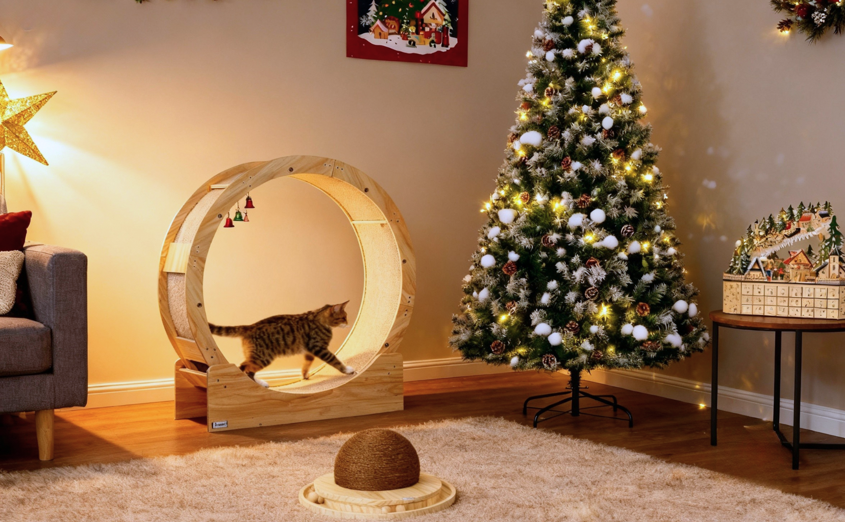 Advento kalendorius su 24 stalčiukais, skirtas pildymui, Kalėdinis kalendorius su LED lemputėmis, natūralaus medžio, 36 x 10 x 34 cm