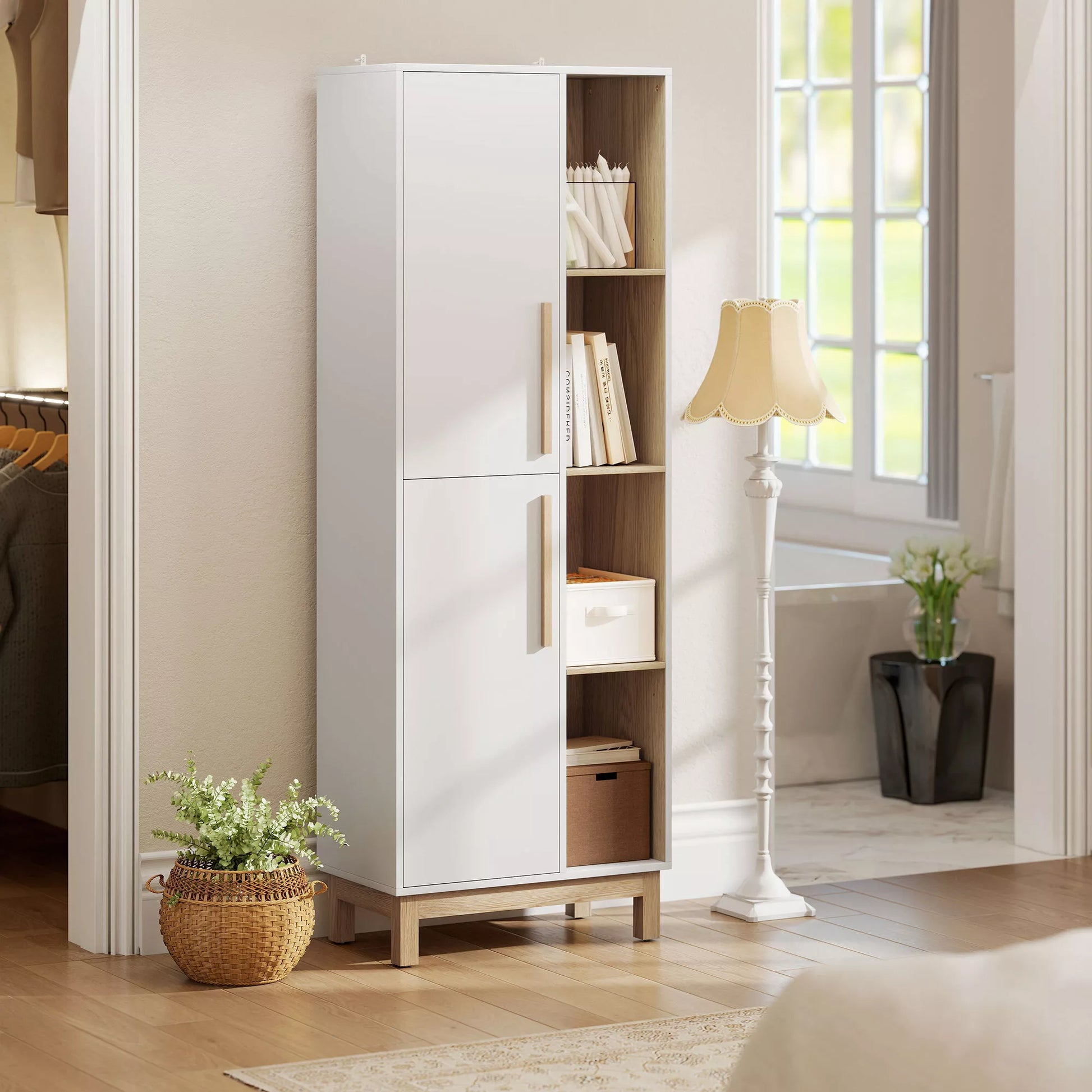 - ✔ Modernus baltos ir natūralaus medžio efektas suteikia jūsų gyvenamajai erdvei estetinio patrauklumo