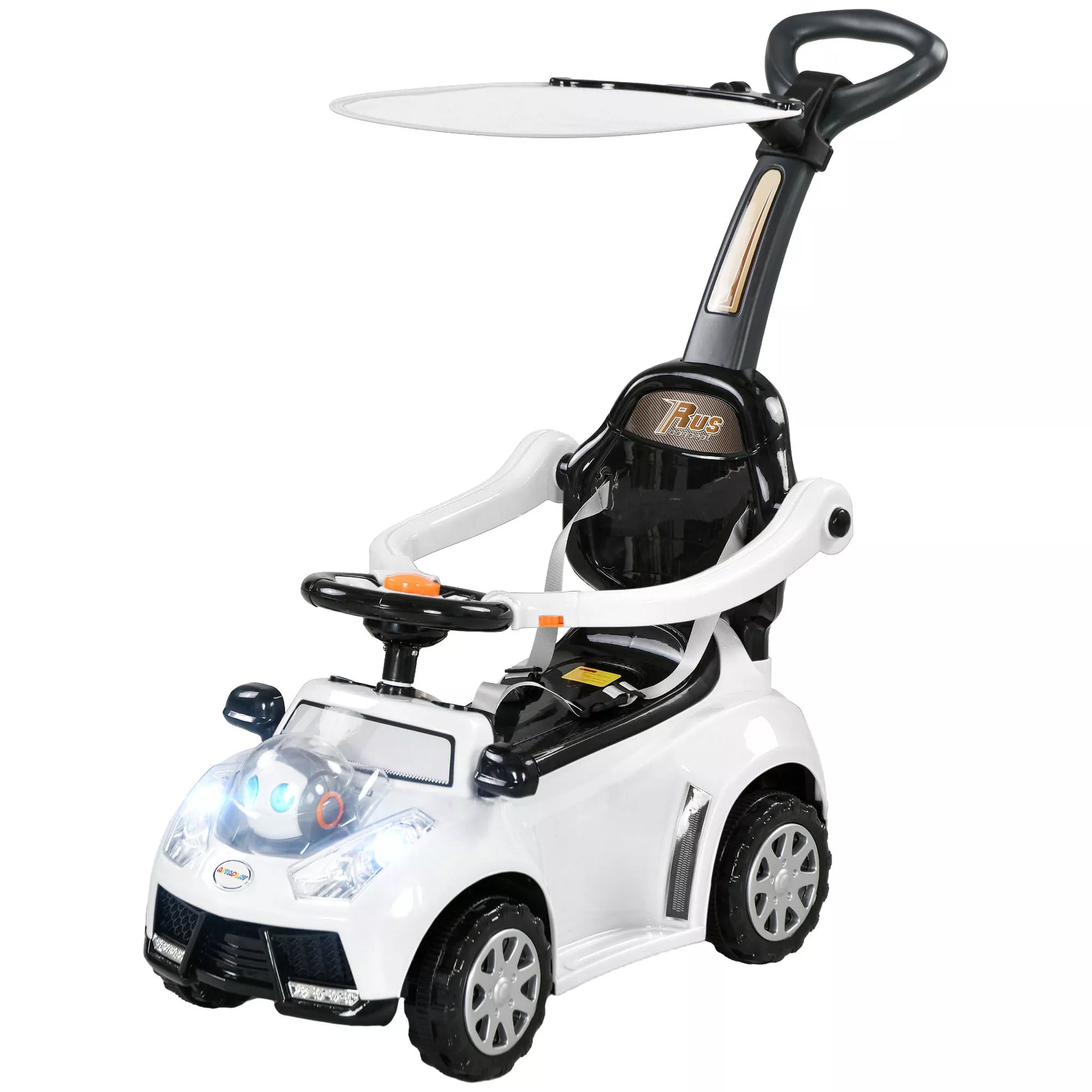 2-in-1 paspiriama mašinėlė, nuimamas stogelis, šviesos, muzika, garsinis signalas, plastikas ir metalas, 96 x 39 x 90 cm, balta/juoda