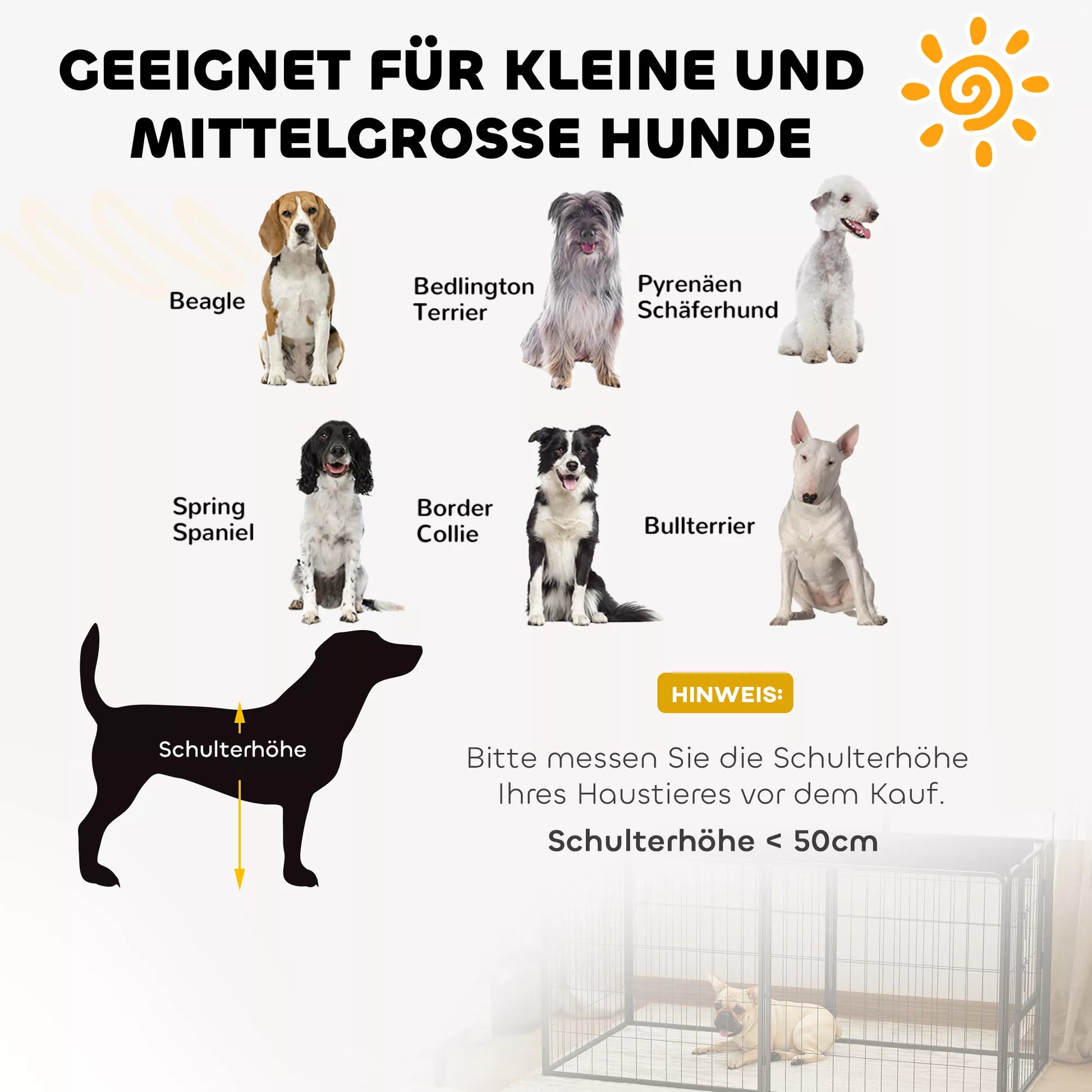 Žaismingai praplėskite savo keturkojo augintinio erdvę su šunų žaidimų aikštele! Su šiuo 2 dalių komplektu galėsite sklandžiai padidinti savo esamos šuniukų aptvaro žaidimų aikštelę ir suteikti daugiau erdvės judėjimui. Pagamintas iš tvirto plieno, jis lengvai sulankstomas ir laikomas, todėl puikiai papildys bet kokį šunų, triušių ar šuniukų aptvarą. Tinka mažiems ir vidutinio dydžio šunims iki 50 cm aukščio ties mautkute.