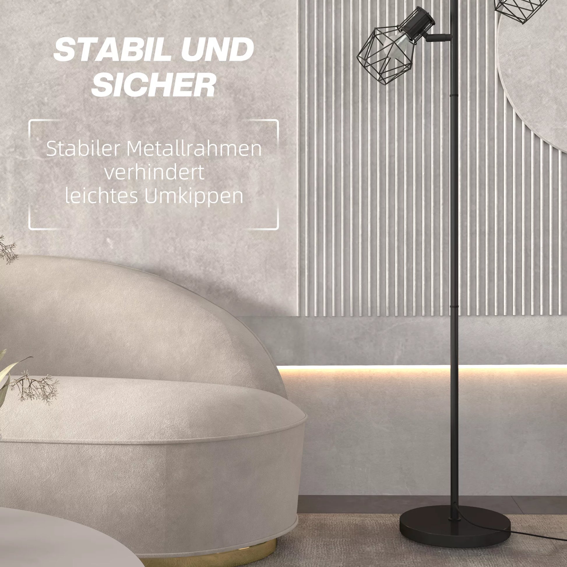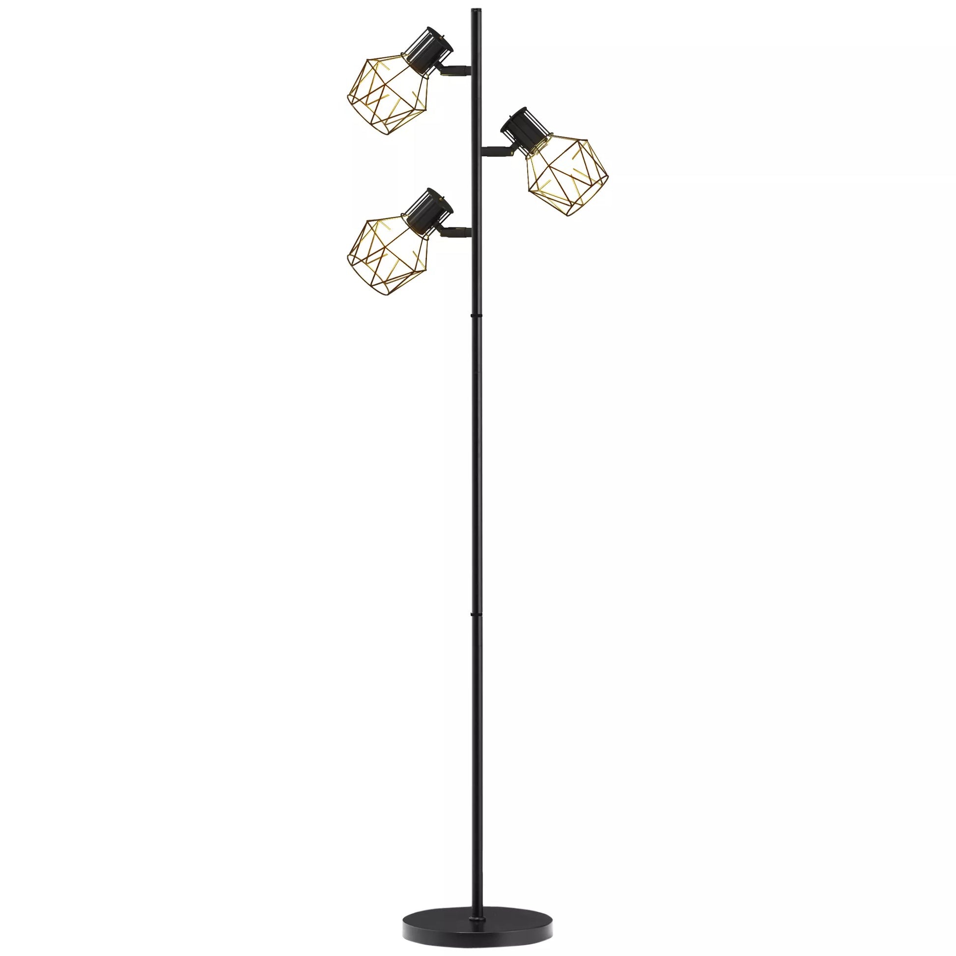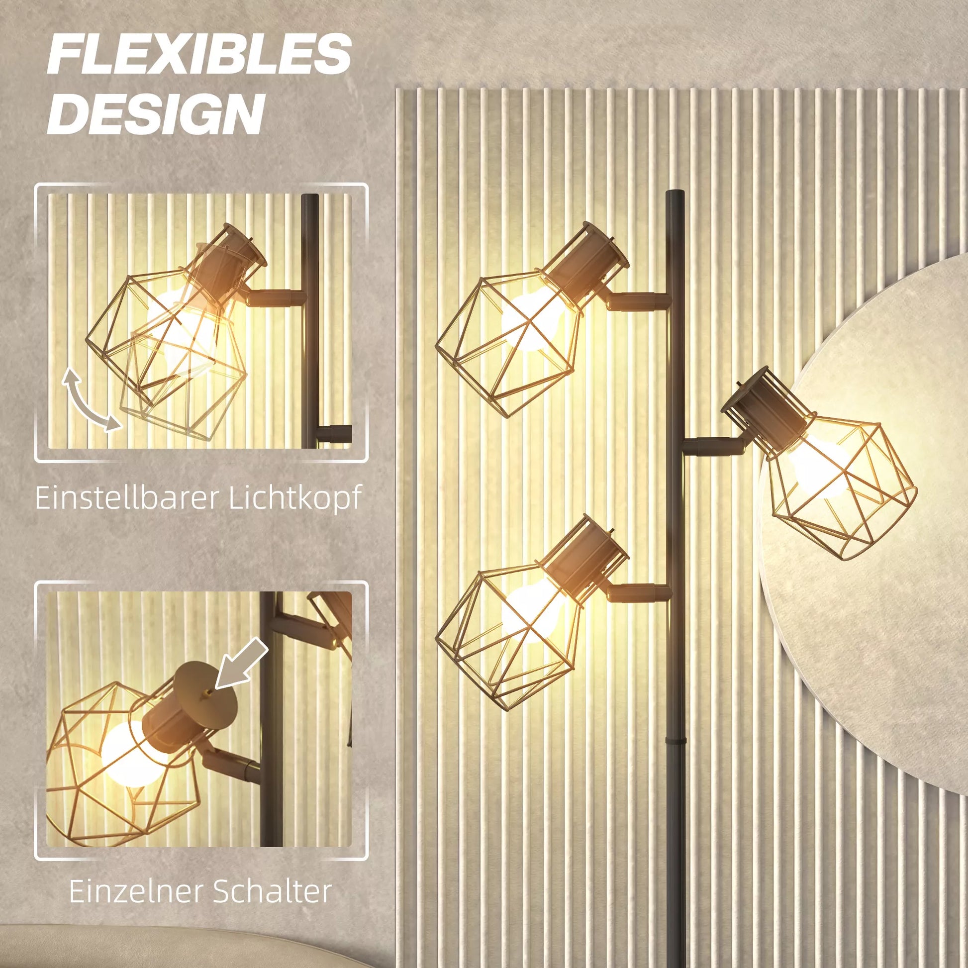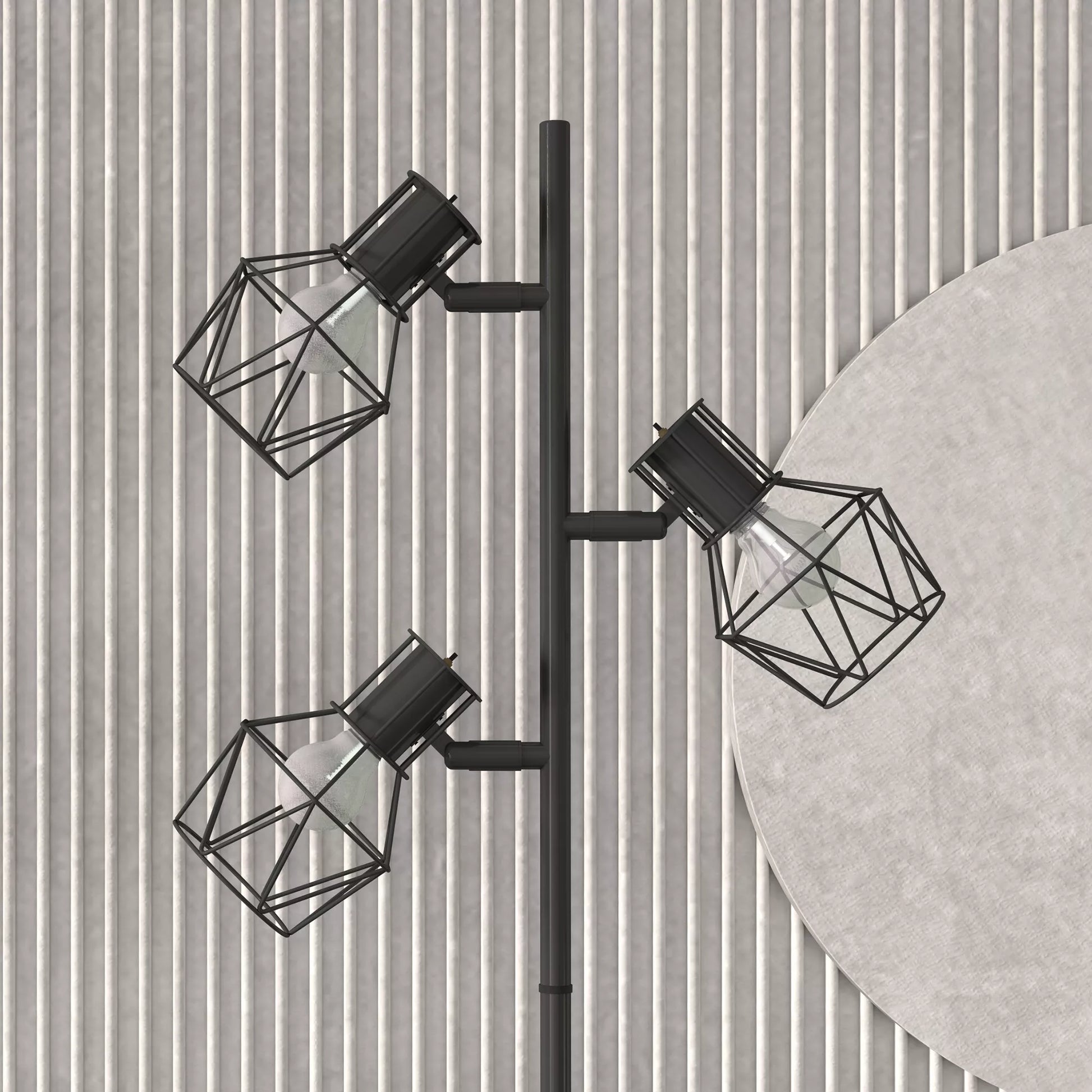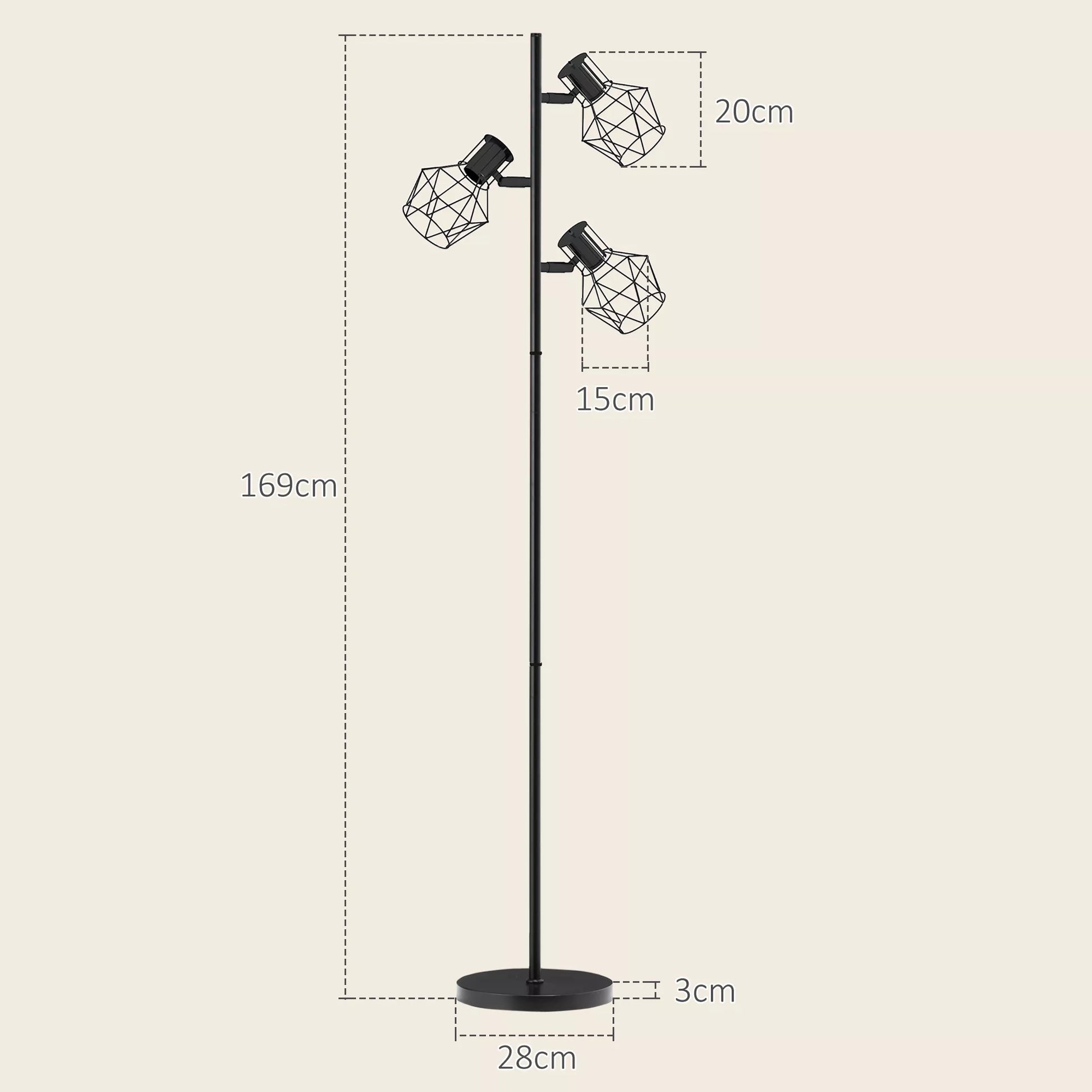 3 šviesų pastatomas toršeras su lanksčiais šviesos elementais, medžio formos, tinkamas svetainei ir miegamajam, metalas, juodos spalvos