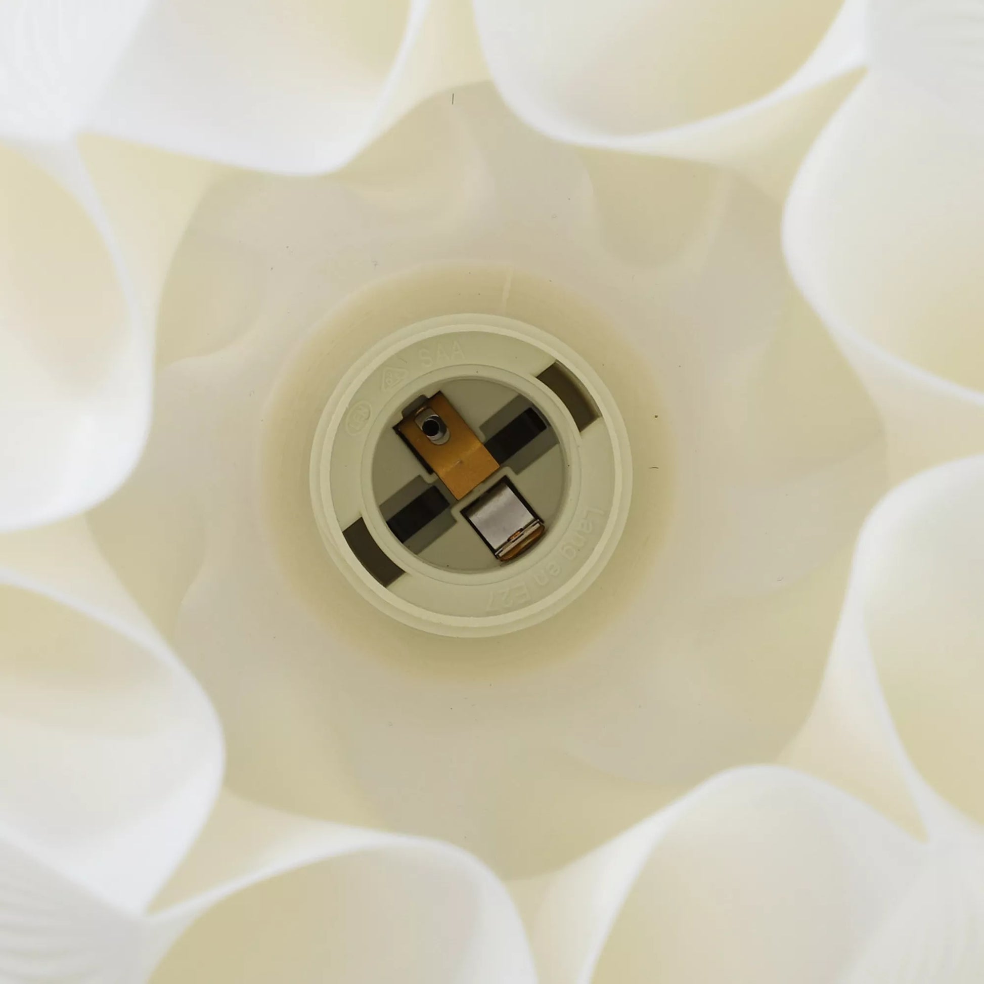 3D spausdinta balta lempa su žiedlapių formomis, pagaminta iš plastiko, energiją taupanti