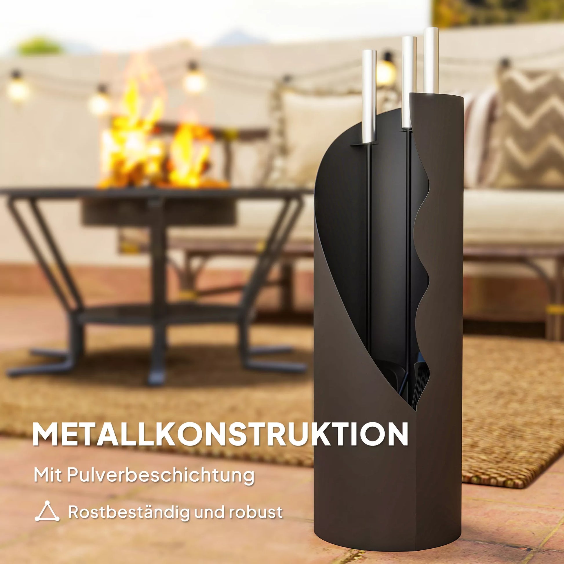 - ✔ Keturių dalių židinių įrankių rinkinį sudaro: šluota, semtuvėlis, žarsteklis ir metalinis kibiras