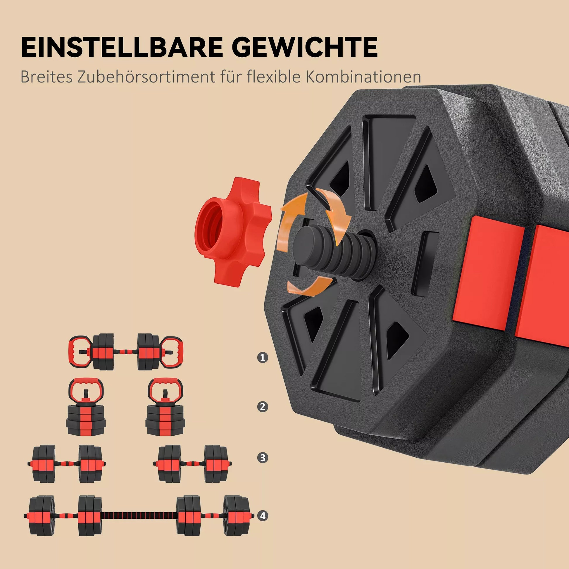 Reguliuojamas 4-in-1 hantelių rinkinys gali būti naudojamas kaip hanteliai, štangos, kettlebellai arba atsispaudimų rankenos. Šį svarmenų rinkinį lengva perkonfigūruoti, kad paįvairintumėte savo treniruočių rutiną. Reguliuokite svorius pagal poreikį, kad užtikrintumėte komfortą treniruotės metu – idealiai tinka pradedantiesiems ir profesionalams. Puikiai tinka bicepso sugarbimui, pritūpimams, pečių kėlimui, išilginiams žingsniams ir suolelio spaudimui, leidžia atlikti viso kūno treniruotę.