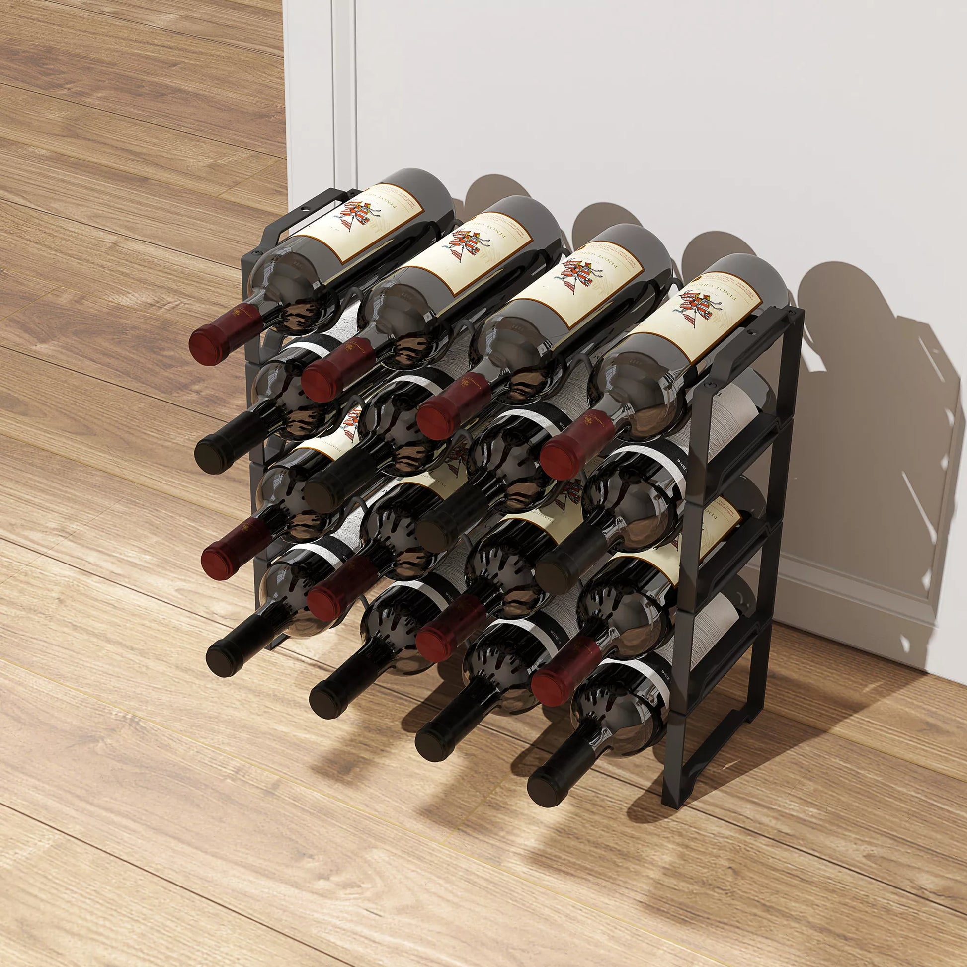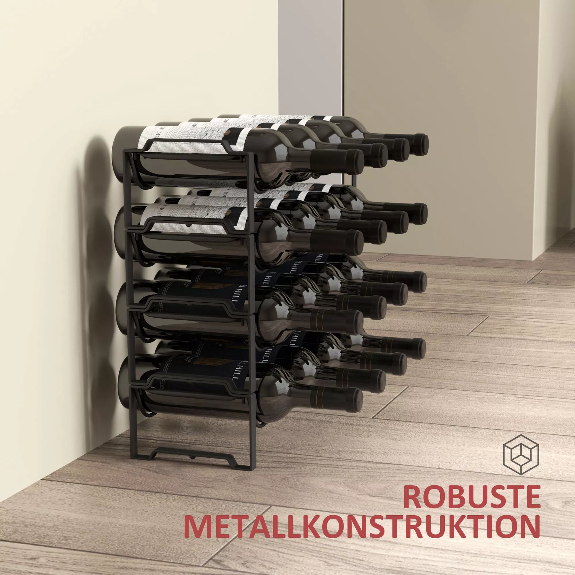 4 pakopų laisvai pastatomas vyno stovas 16 vyno buteliams, metalinis, juodas