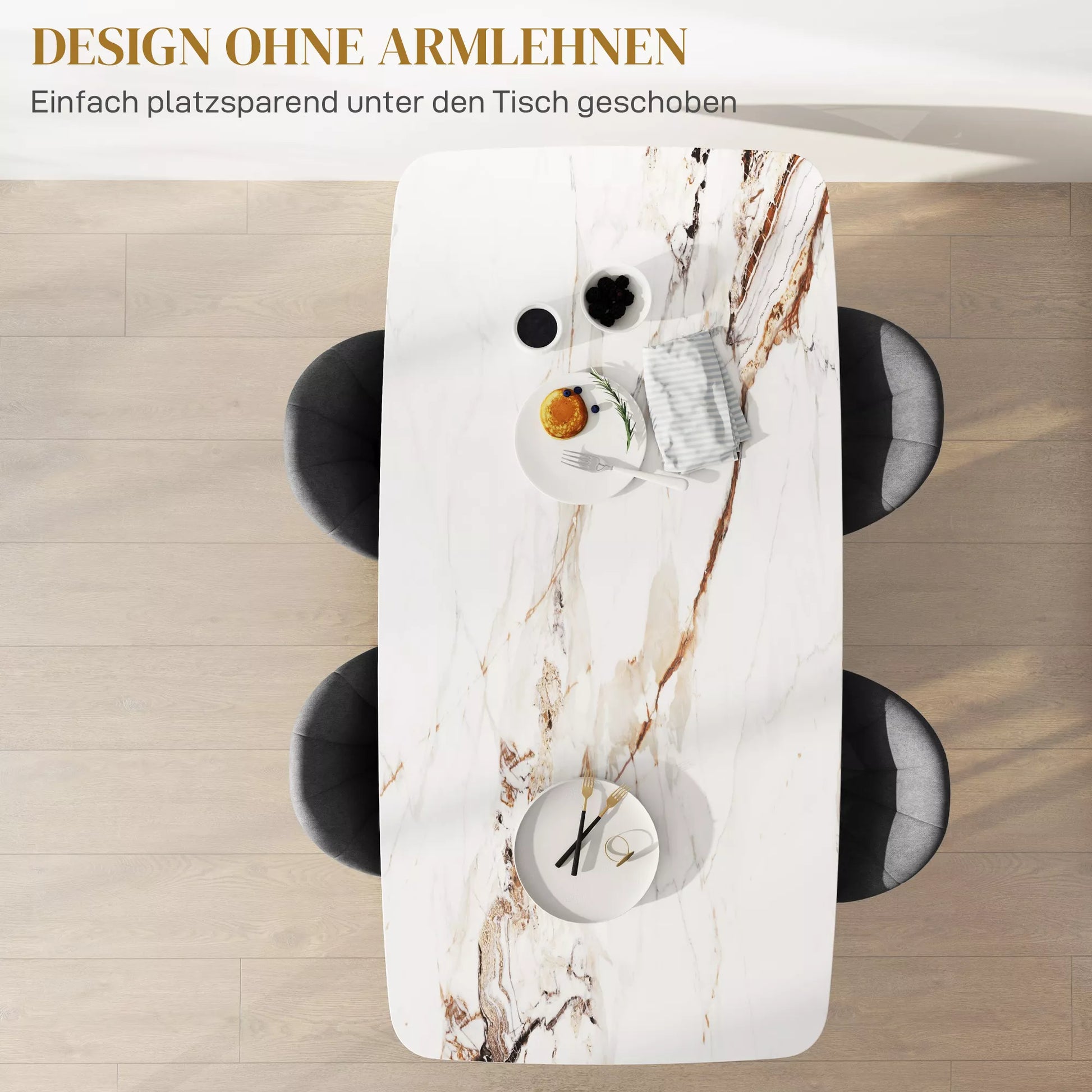 Šis keturių modernių valgomojo kėdžių komplektas pakels jūsų valgymo patirtį į naują lygį. Elegantiškas kriauklinis atlošas ir subtilus deimantinis dygsniavimas patraukia visų dėmesį. Šios poliruotos kėdės, pagamintos iš aksomo, suteikia prabangos pojūtį ir yra ergonomiškai suformuotos, užtikrinant maksimalų komfortą ir atramą valgant. Kiekviena virtuvinė kėdė sujungia stilių ir funkcionalumą, paversdama kiekvieną valgį ypatinga švente.