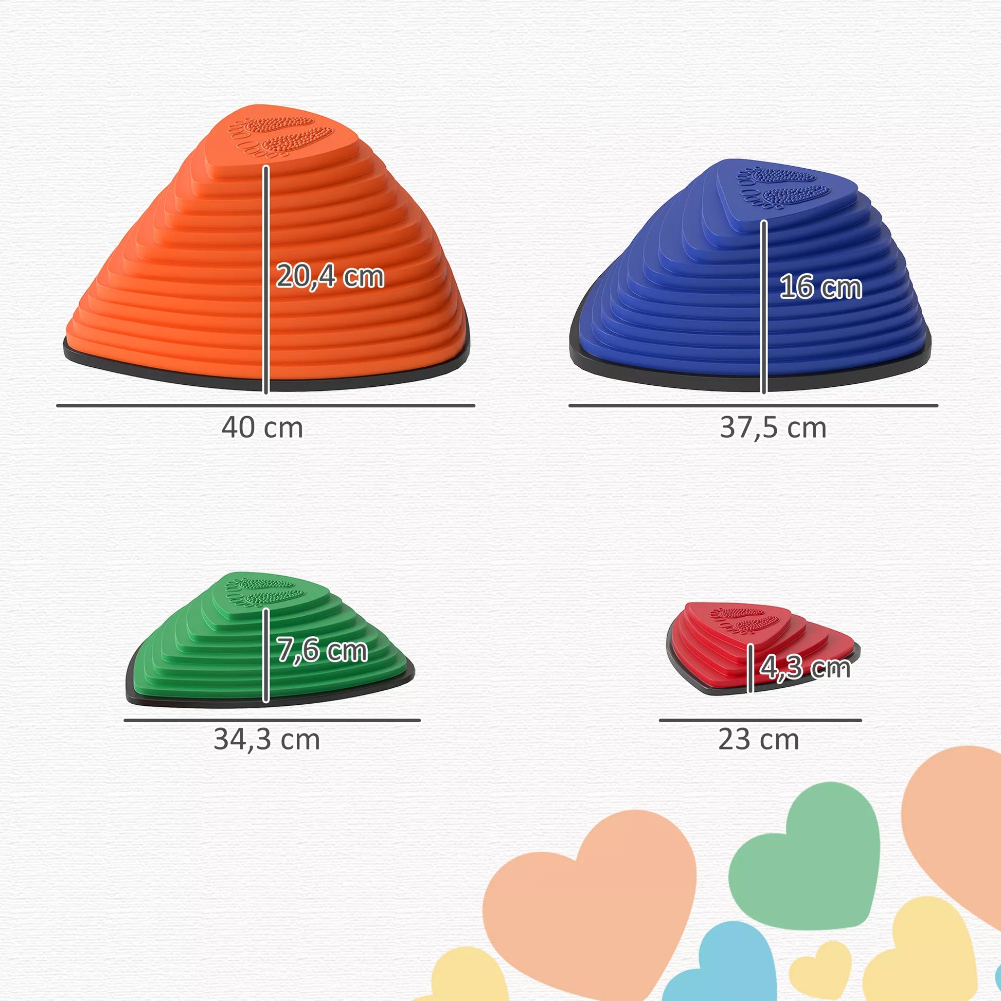 Šie balansiniai akmenys puikiai tinka augantiems vaikams. Šis 11 vienetų rinkinys skatina pusiausvyros ir koordinacijos lavinimą. Jų trikampė forma ir ryškios spalvos skatina žaidimus. Jie užtikrina saugumą dėl neslystančių apvadų ir struktūruotų paviršių. Jie yra lengvi, sudedami ir tinkami naudoti tiek viduje, tiek lauke. Su šiais sensoriniais balansiniais akmenimis žaidimai taps saugūs ir smagūs.