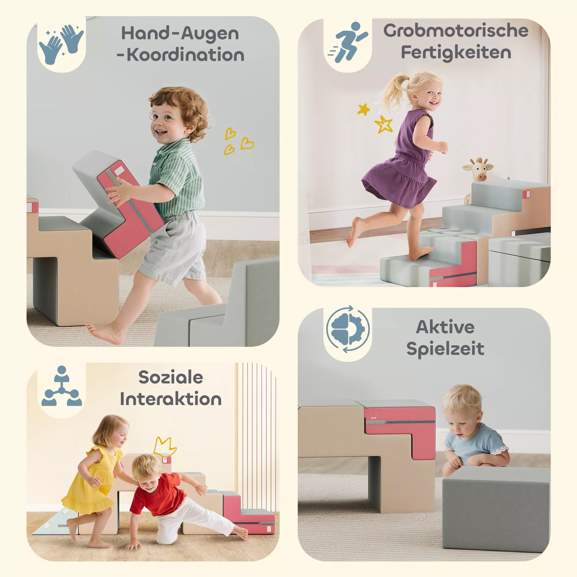 Sukurtas specialiai 0,5-3 metų vaikams, šis 2 dalių minkštų blokelių rinkinys skatina kūrybišką žaidimą, leisdamas jūsų vaikui sukonstruoti čiuožyklą arba stalo ir kėdžių komplektą. Pagaminti iš didelio tankio dirbtinės odos ir putplasčio, šie putplasčio statybiniai blokeliai skatina jutimo ir pažinimo raidą, sukurdami saugią, spalvingą ir universalią žaidimų erdvę.