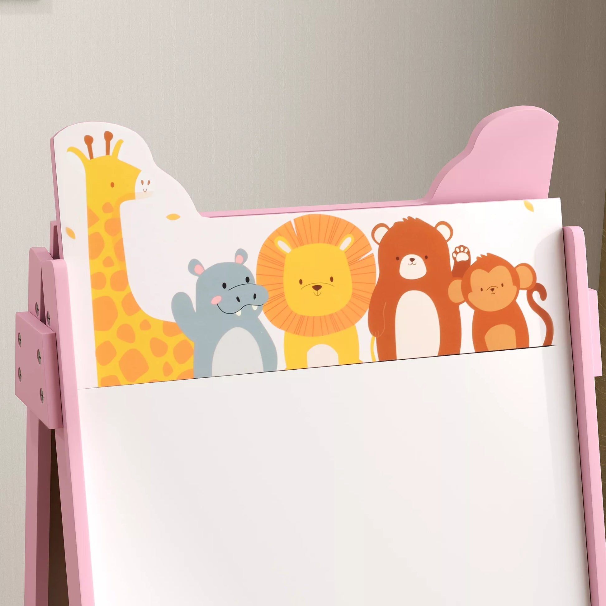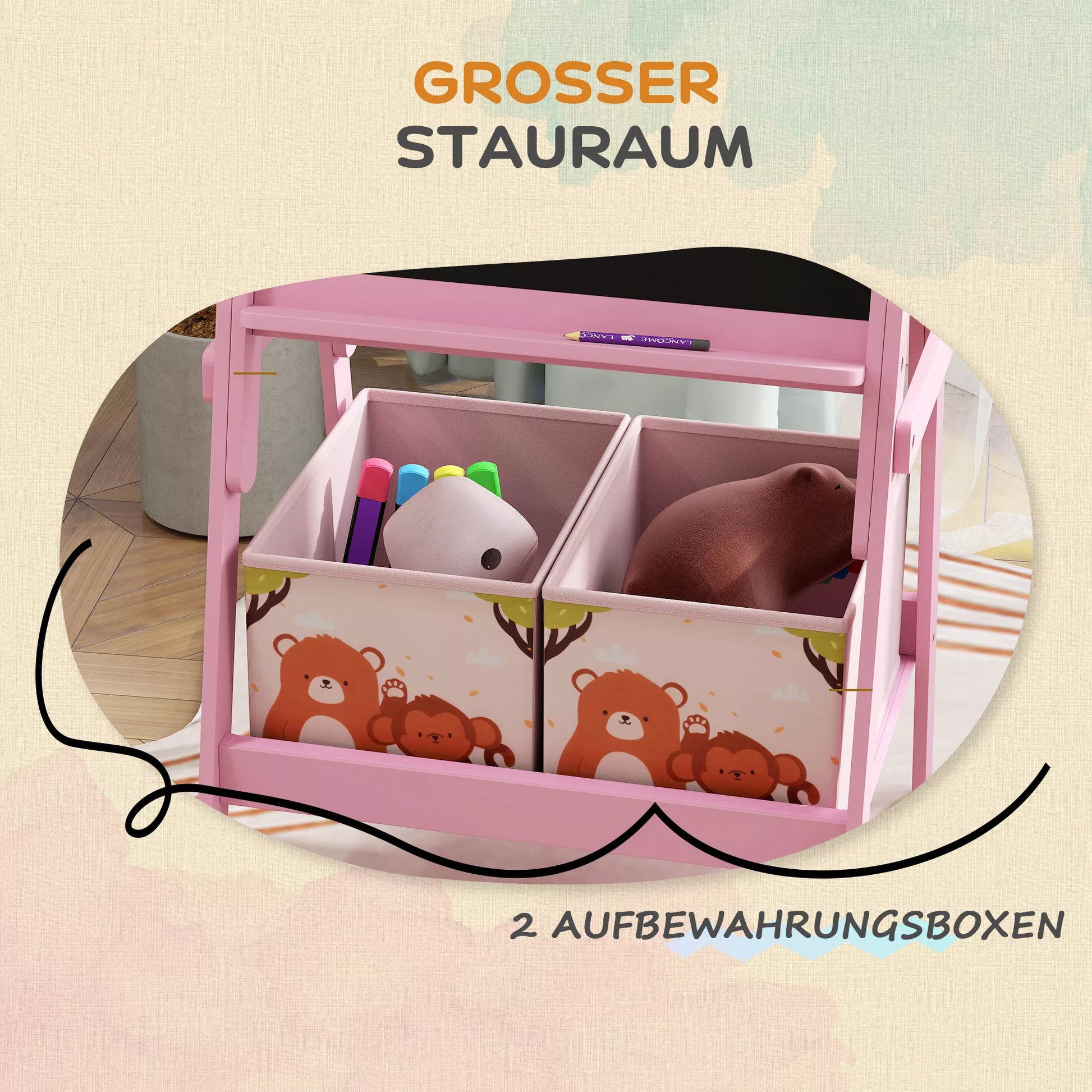 2-in-1 vaikiška dailės lenta su baltąja lenta, kreidine lenta, laikymo dėžėmis, 3-8 metų vaikams, rožinė