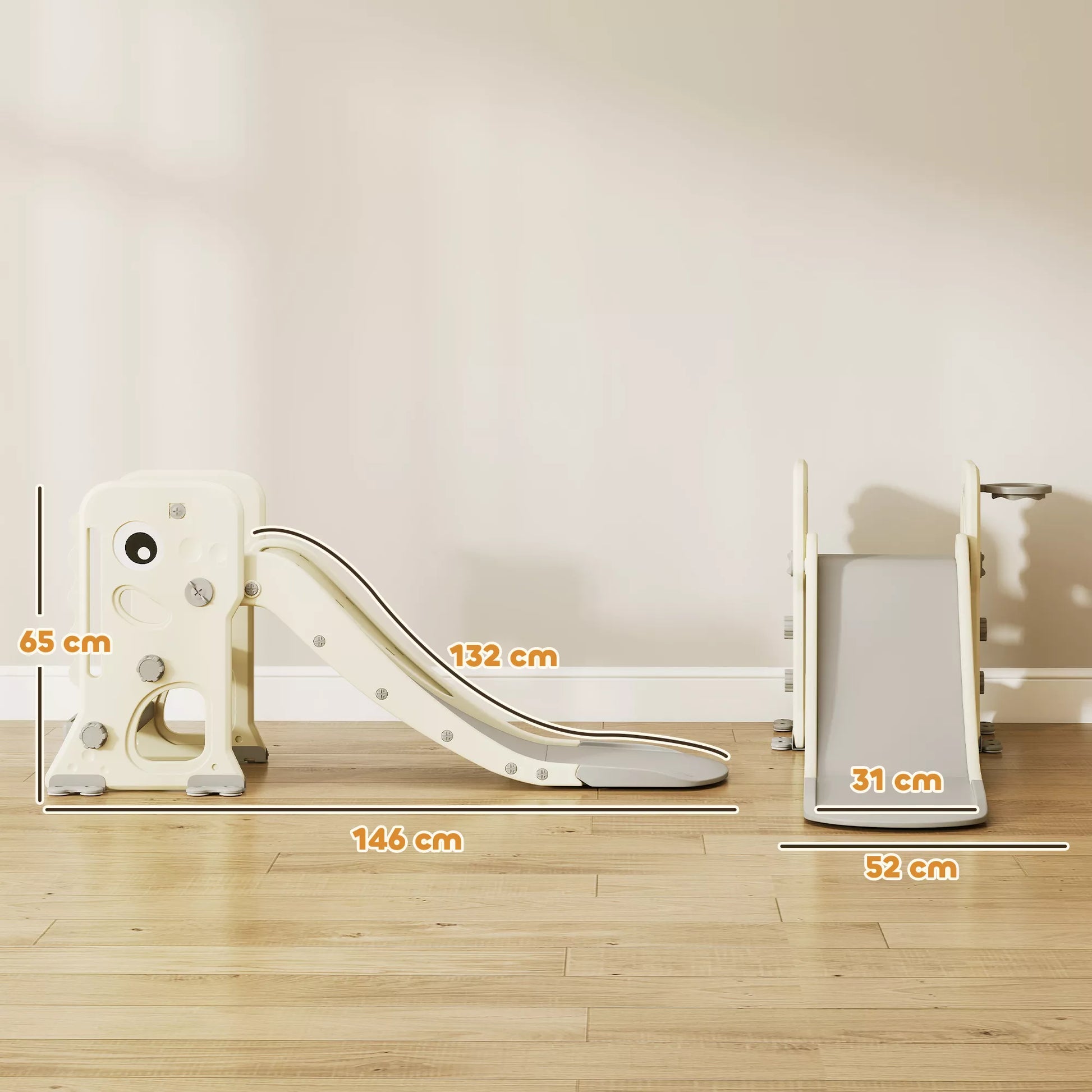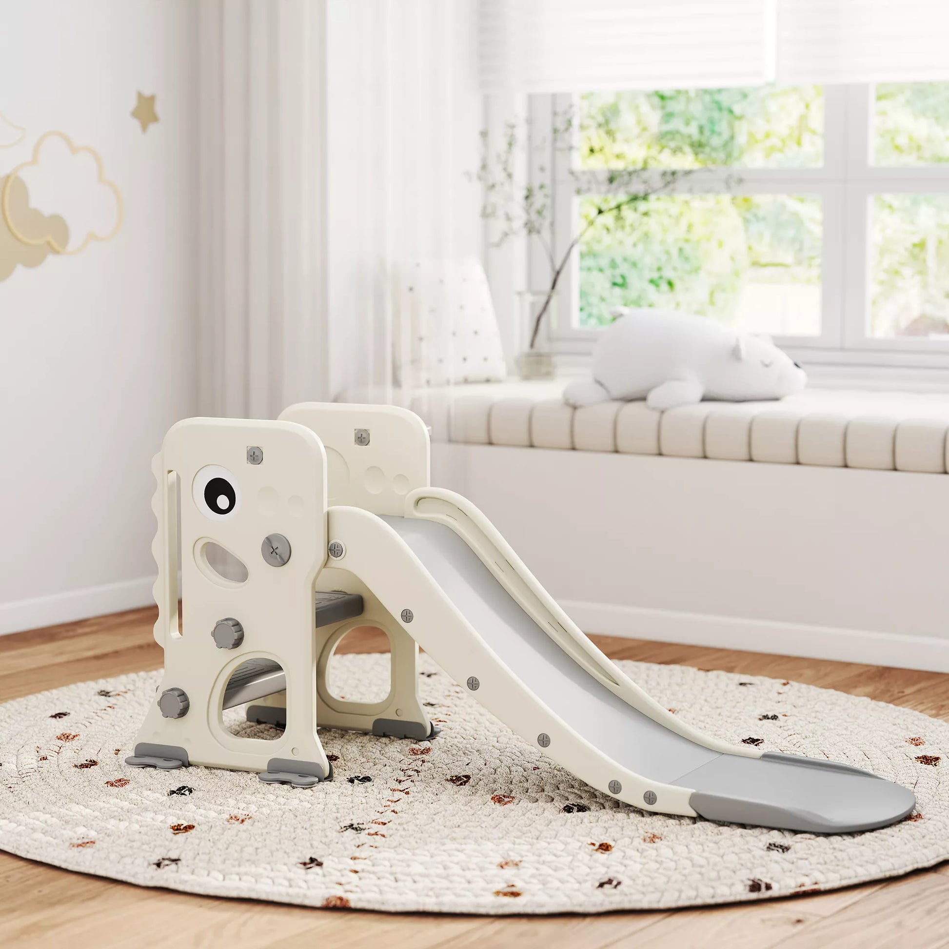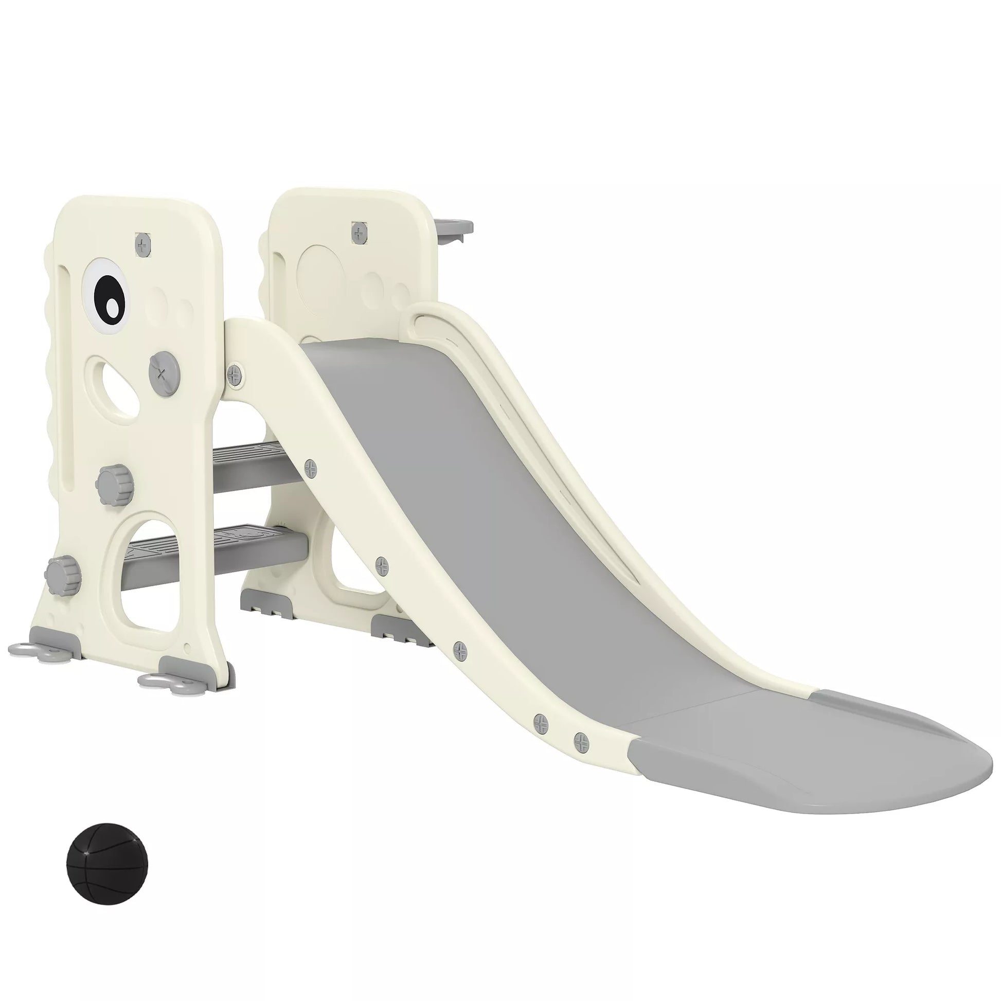 - ✔ 3-in-1 dizainas su čiuožykla, laipiojimo aikštele ir krepšinio lanku daugiafunkciam žaidimų malonumui
