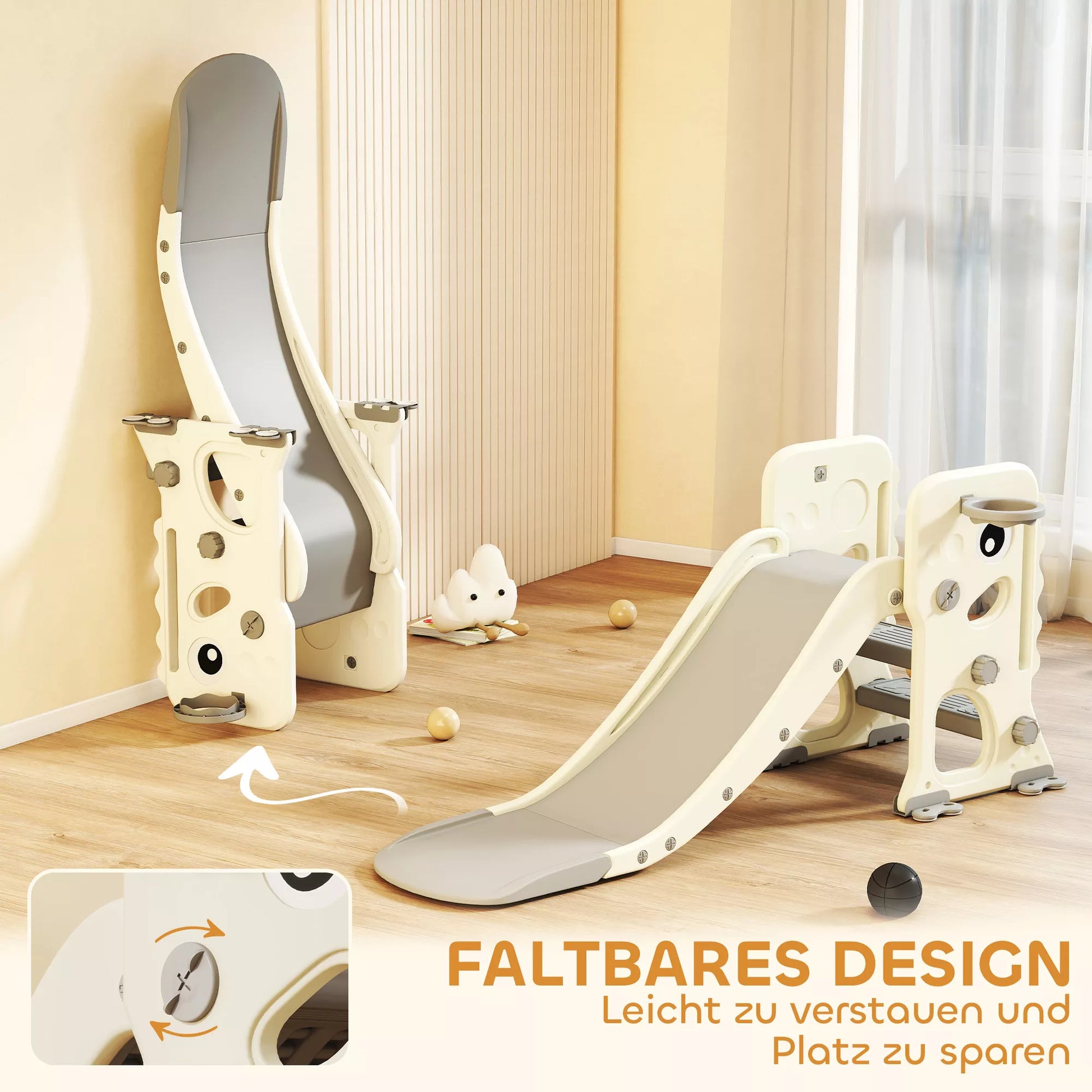 3in1 vaikiška čiuožykla su laipiojimo aikštele, krepšinio lanku ir kamuoliu, sulankstoma vidinė mažylių čiuožykla vaikams nuo 2 iki 5 metų