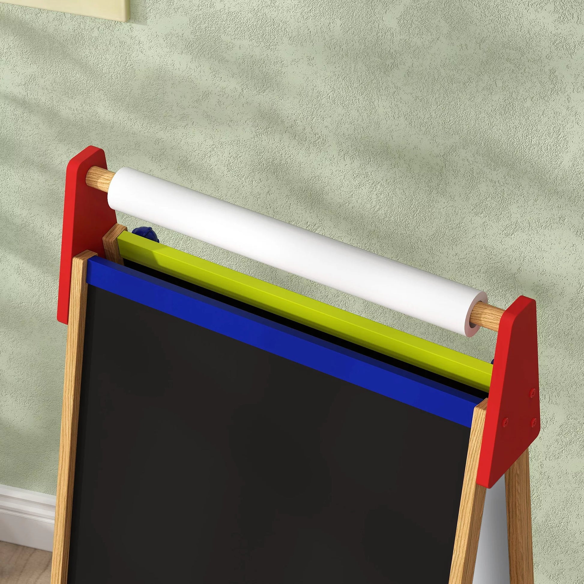 3-in-1 Vaikiškas molbertas, kreidinė lenta, rašomoji lenta, popieriaus ritinėlis, su priedais, pušies mediena, reguliuojamas