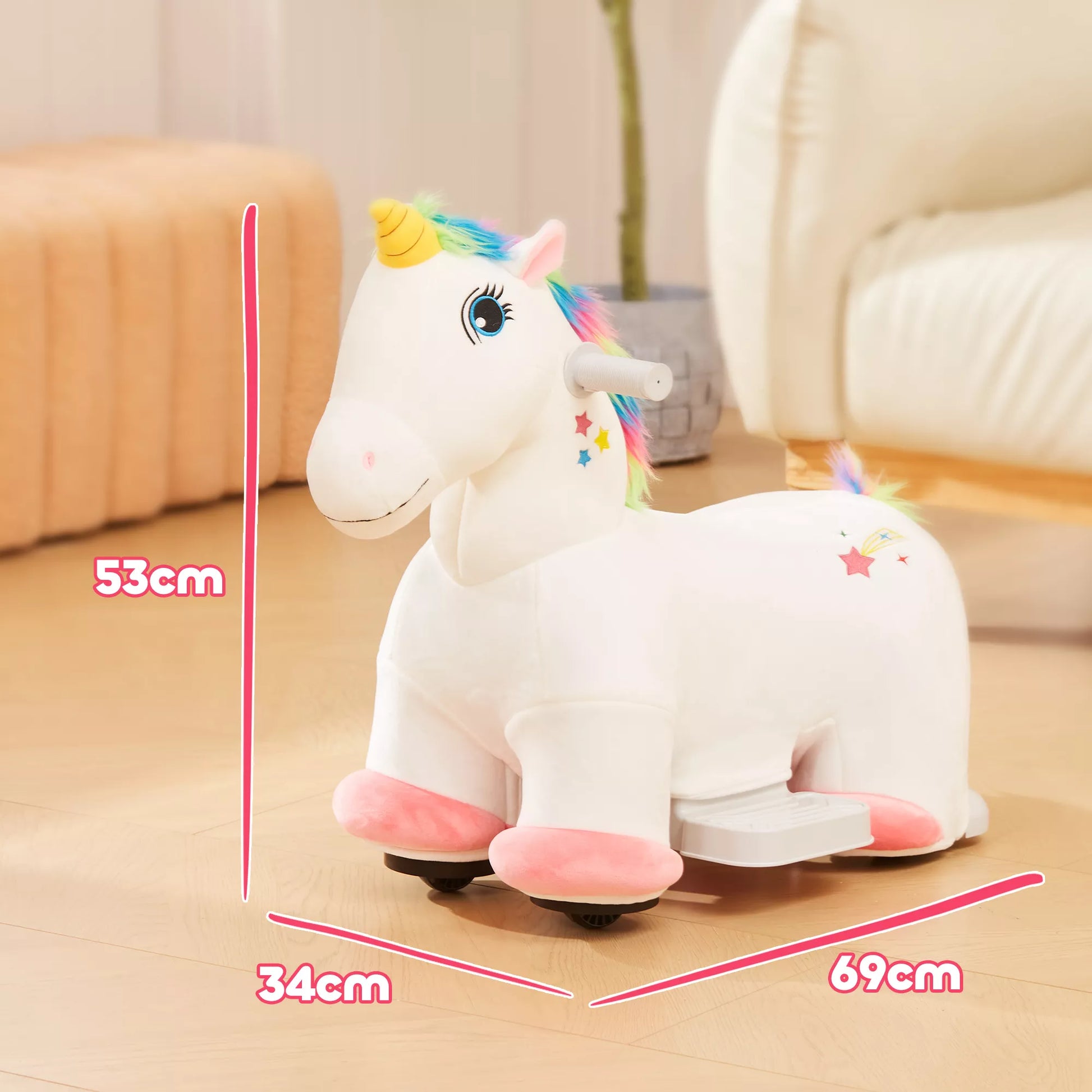 6V Elektrinis Jojimo Vienaragis Vaikams, Veikiantis Nuo Baterijų, Su Muzikos Funkcija Ir Važiavimo Pirmyn Funkcija, 18-36 Mėn., Baltas