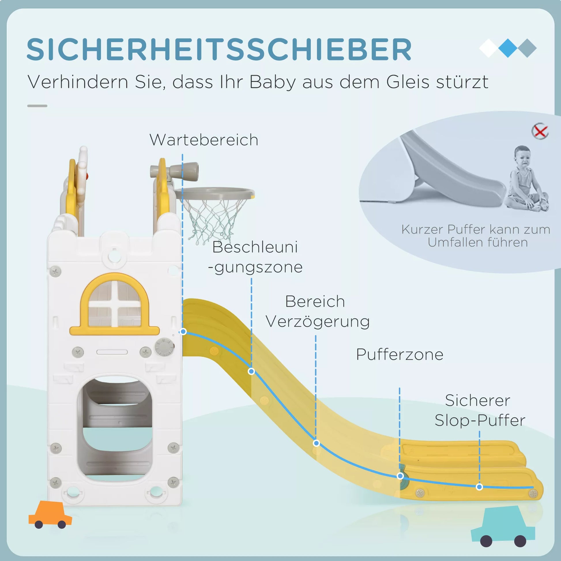 - ✔ Vaikiška čiuožykla turi greitėjimo ir lėtėjimo zonas saugiam čiuožimui, taip pat buferinę zoną patogiam atsistojimui