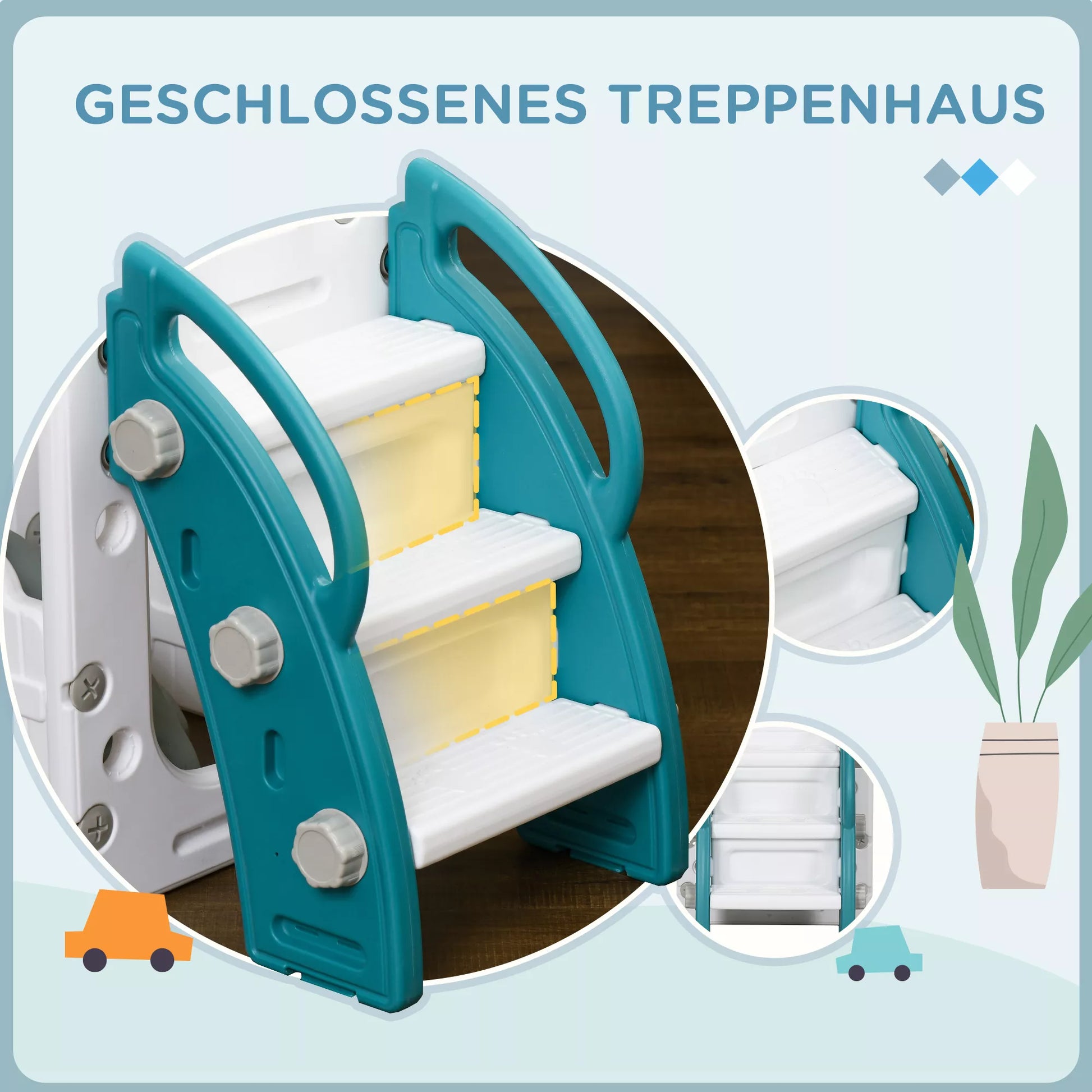 - ✔ Universalaus 7-in-1 dizaino vaikiška čiuožykla suteikia daugybę žaidimo galimybių