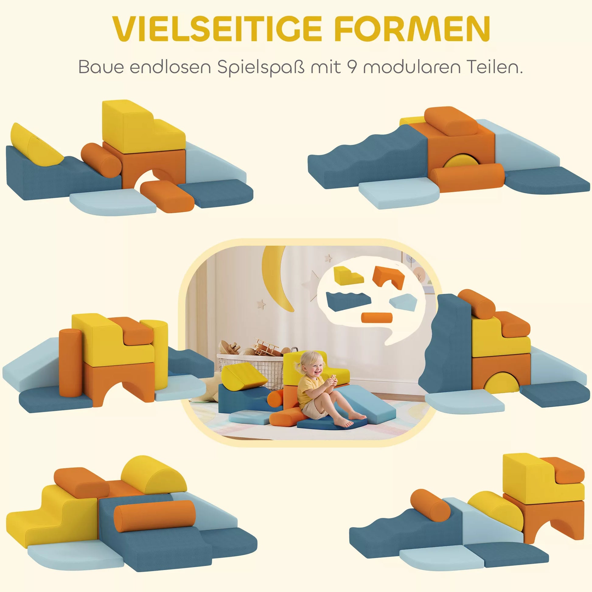9 dalių minkštų blokelių rinkinys, minkšti blokeliai statyboms ir žaidimams, vidinis žaidimų rinkinys mažyliams, putplastis, spalvotas
