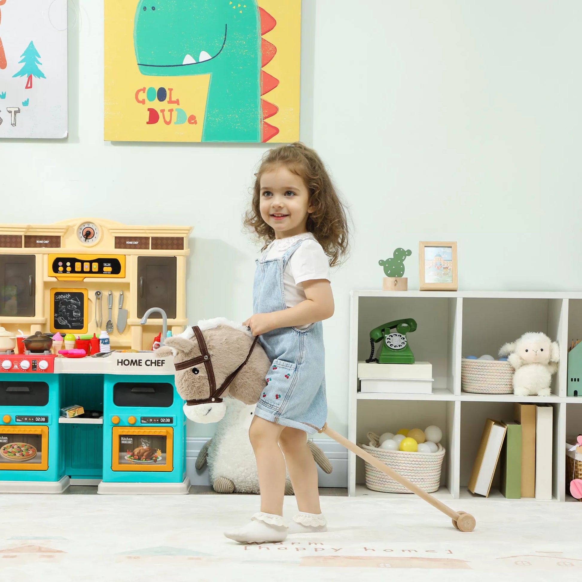 Ar jūsų vaikas per daug energingas, kad liktų namuose? Šis medinis arkliukas leis jo vaizduotei skraidyti ir pavers bet kurią vietą įdomiu nuotykiu. Su žvengimo garsais ir lengvai riedančiais ratais šis medinis arkliukas tinka tiek lauke, tiek viduje ir skatina žaismingą veiklą bet kokiomis oro sąlygomis.