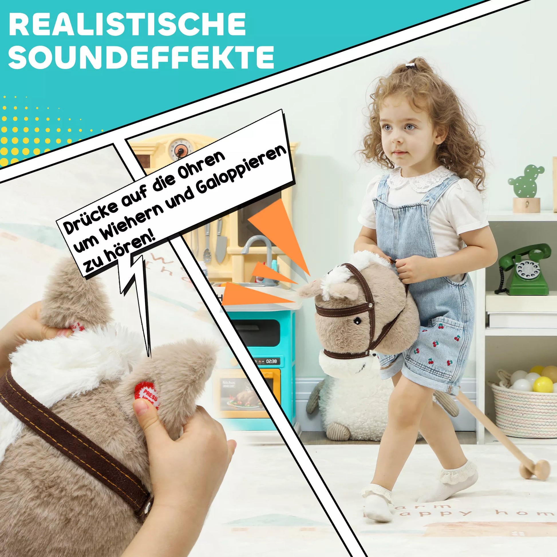 Arkliukas ant pagaliuko vaikams, su garsu, ratukais, žaidimų arkliukas jodinėjimui, skirtas vaikams nuo 24 mėnesių, pilkos spalvos