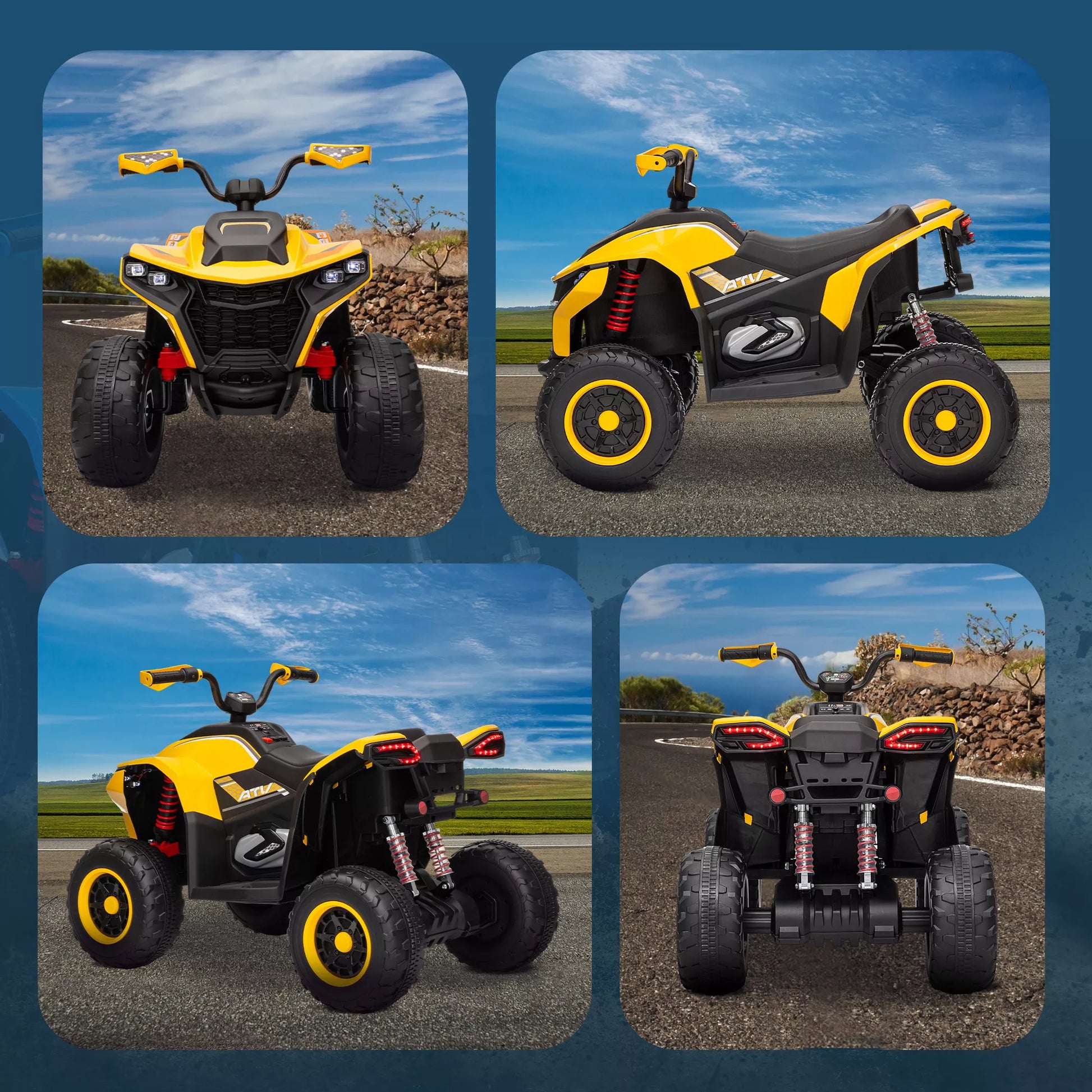 Elektrinis keturratis vaikams, 3-6 km/val., LED priekiniai žibintai, muzika, USB, skirtas 3–8 metų vaikams, geltonas