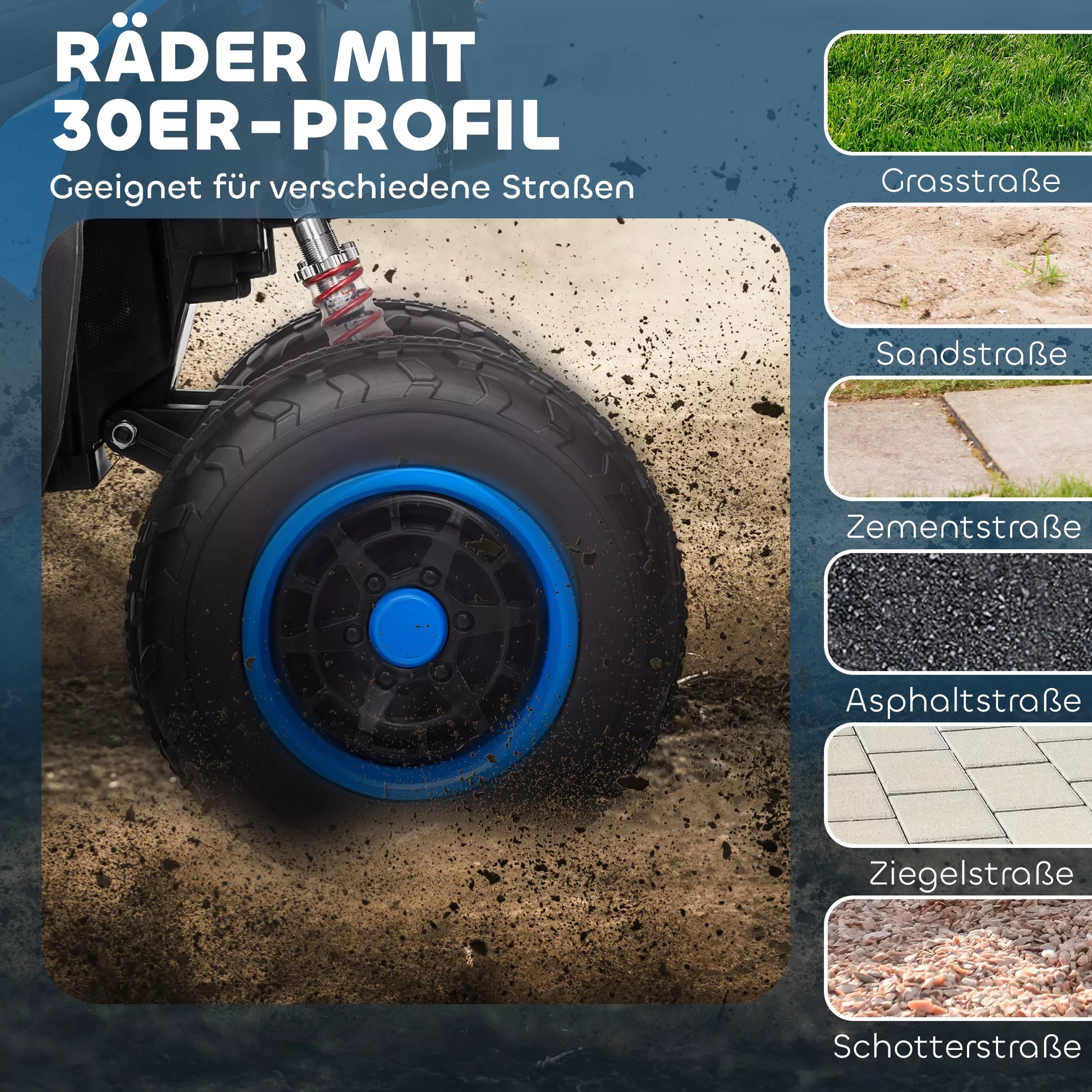 Elektrinis keturratis vaikams, 3-6 km/h, LED žibintai, muzika, USB, 3-8 metų amžiaus, mėlynas
