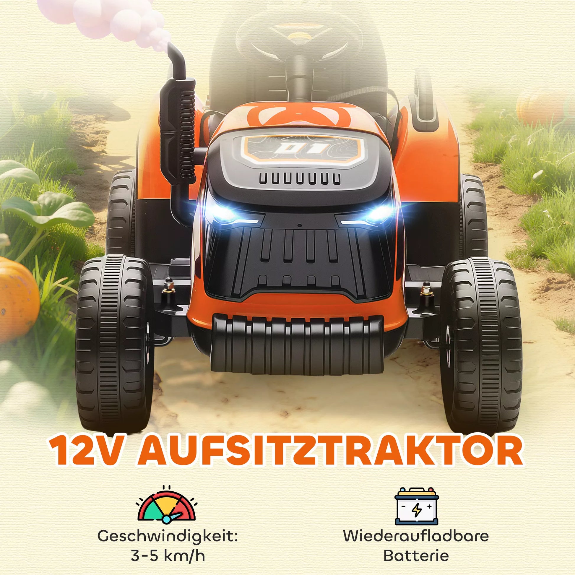 Elektrinis vaikiškas traktorius, važiuojamas traktorius su nuotolinio valdymo pulteliu, švelnaus paleidimo funkcija, vaikams nuo 3 iki 8 metų, Oranžinis