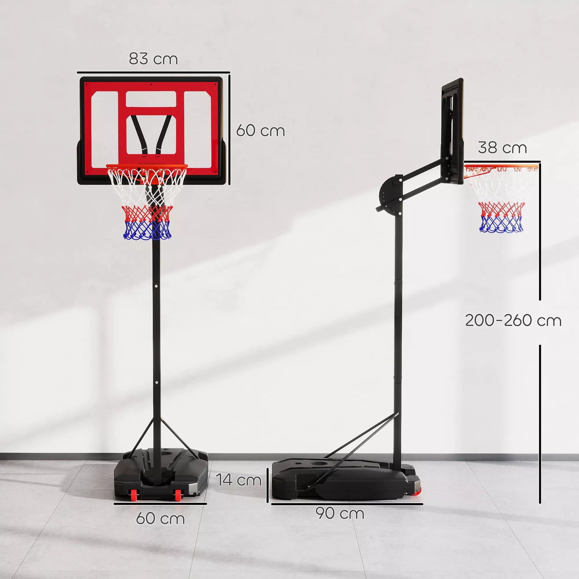 Lauko krepšinio stovas jaunimui, 200-260 cm reguliuojamo aukščio, su ratukais, raudonas