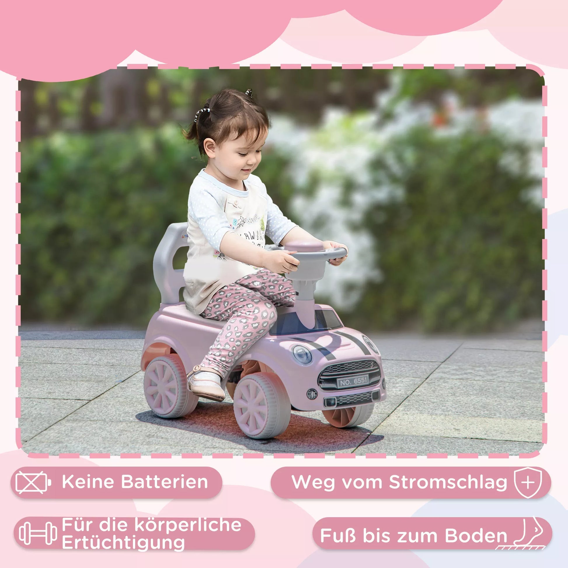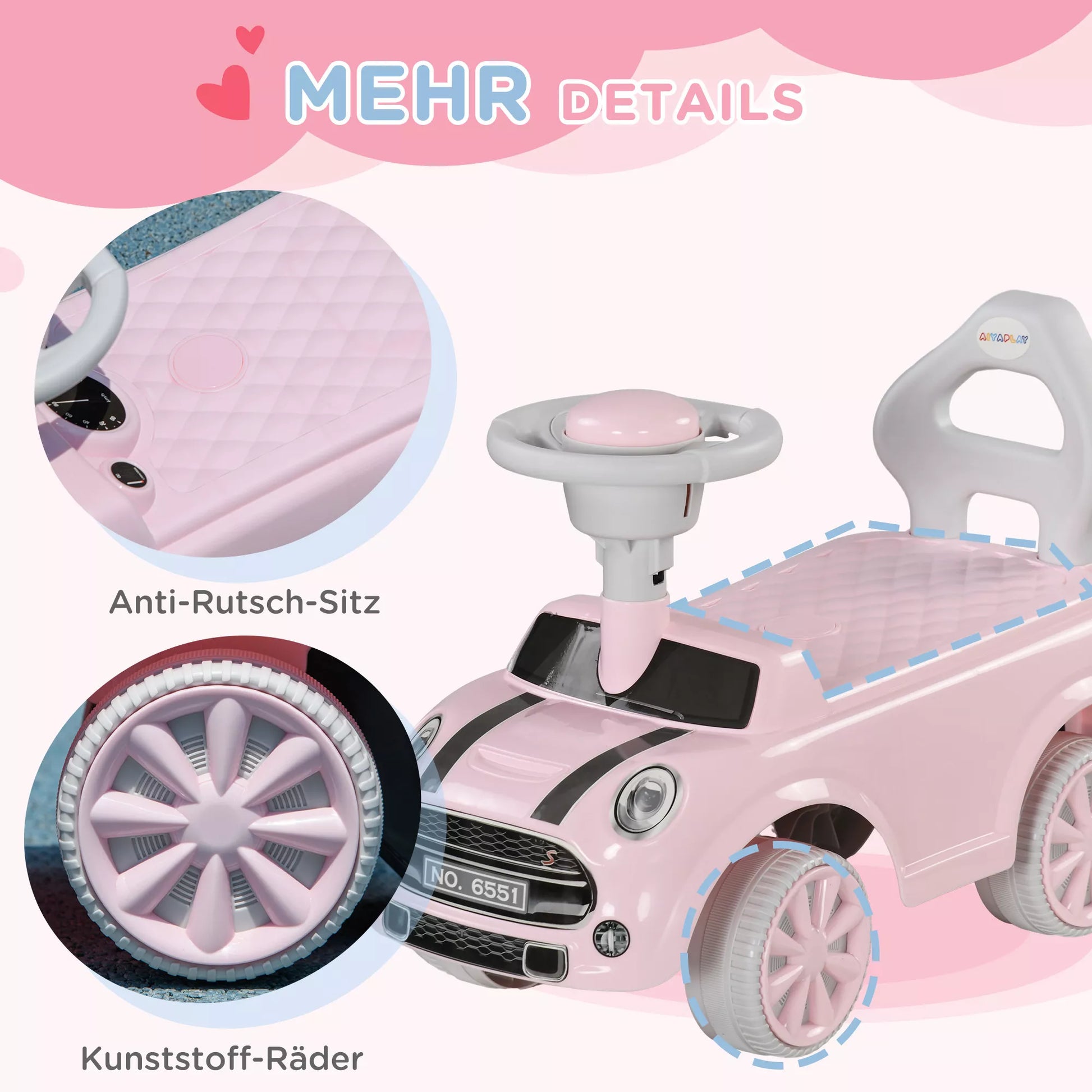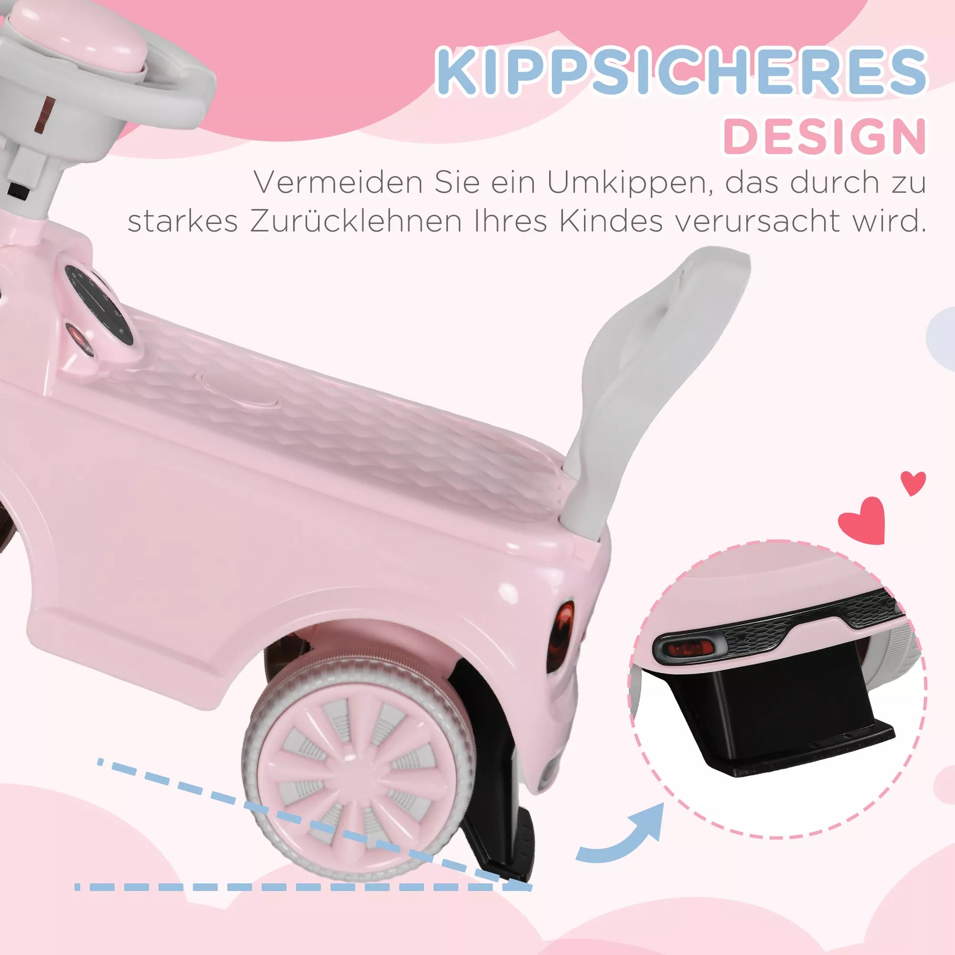 Vaikiškas pasivažinėjimo automobilis, apsauga nuo apvirtimo, garso signalas, neslystanti sėdynė, vaikams nuo 1,5-3 metų, iki 25 kg, rožinis