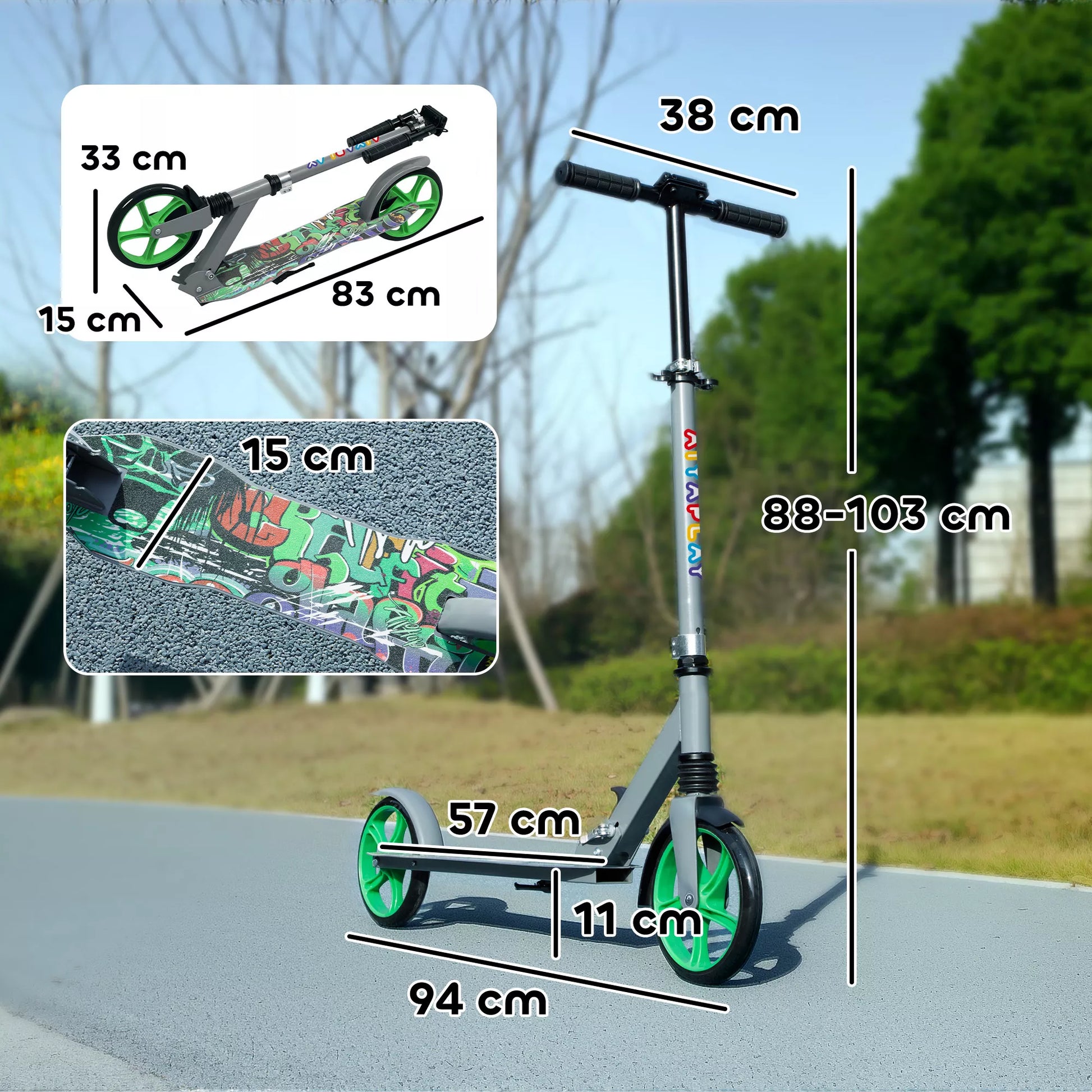 Tretroller, aukščio reguliuojamas, galinis stabdys, sulankstomas, 100 kg apkrova, žalias