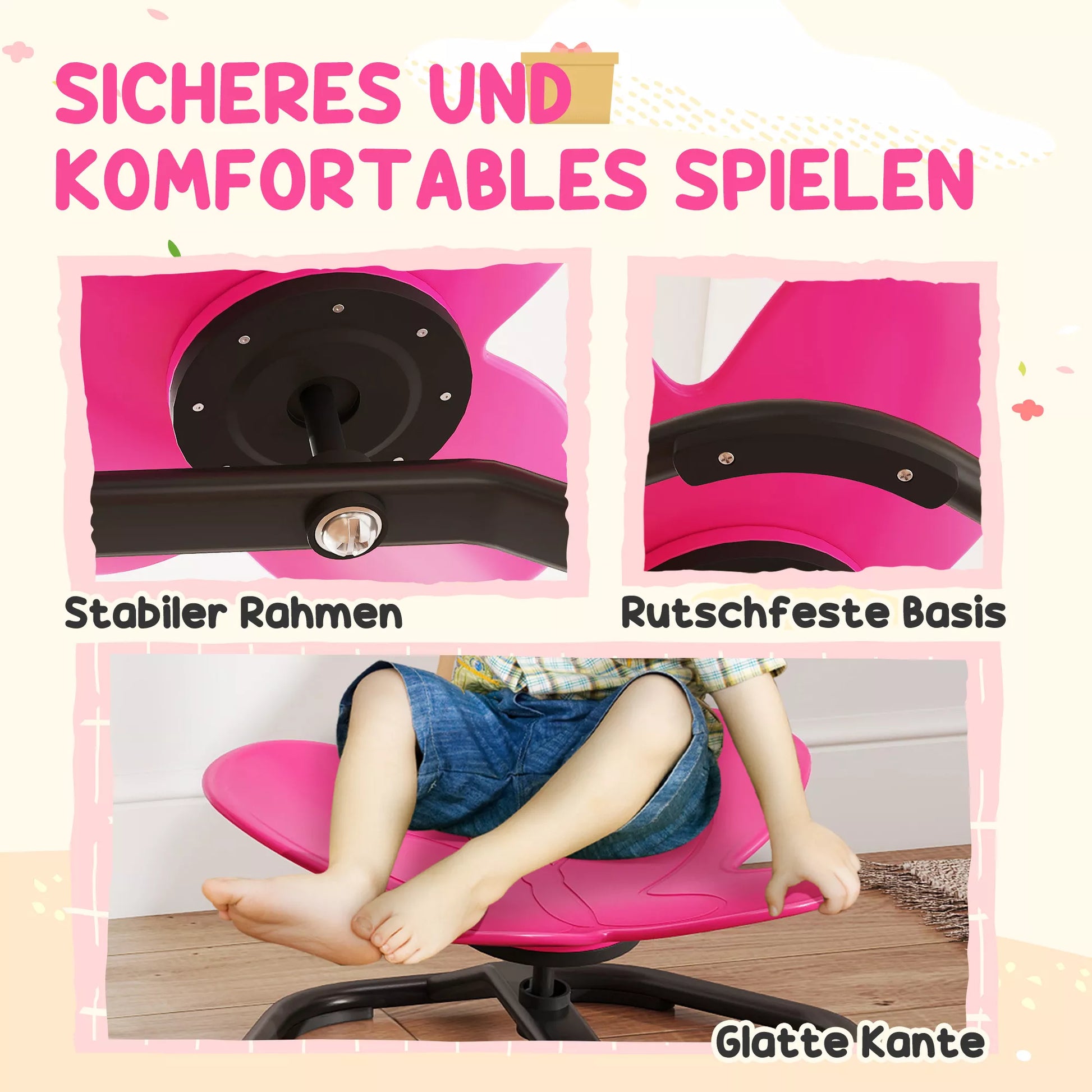 - ✔ 360° besisukantis kėdės dizainas skatina vaikų pusiausvyrą ir koordinaciją