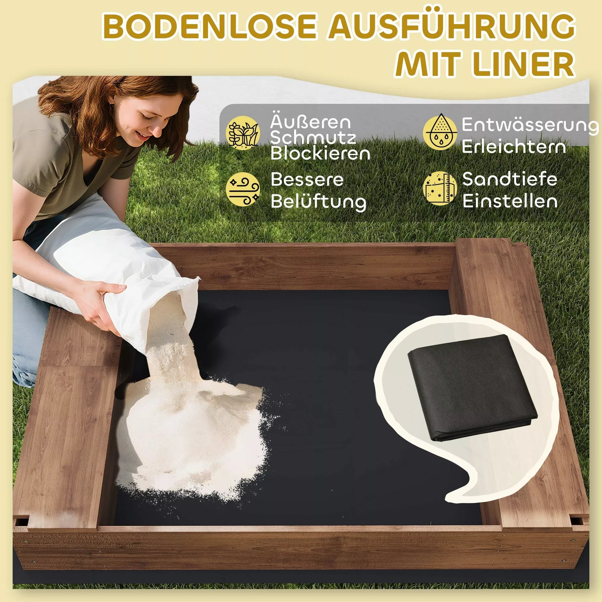 Smėlio dėžė su stogeliu ir tinklinėmis durelėmis, suoliukais, dugno apsauga, ruda