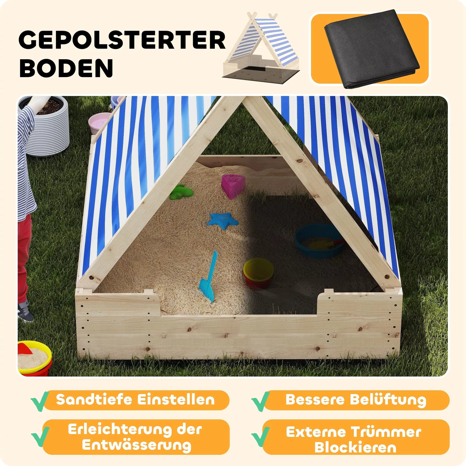 - ✔ Palapinės formos smėlio dėžės stogas apsaugo vaikus nuo tiesioginių saulės spindulių