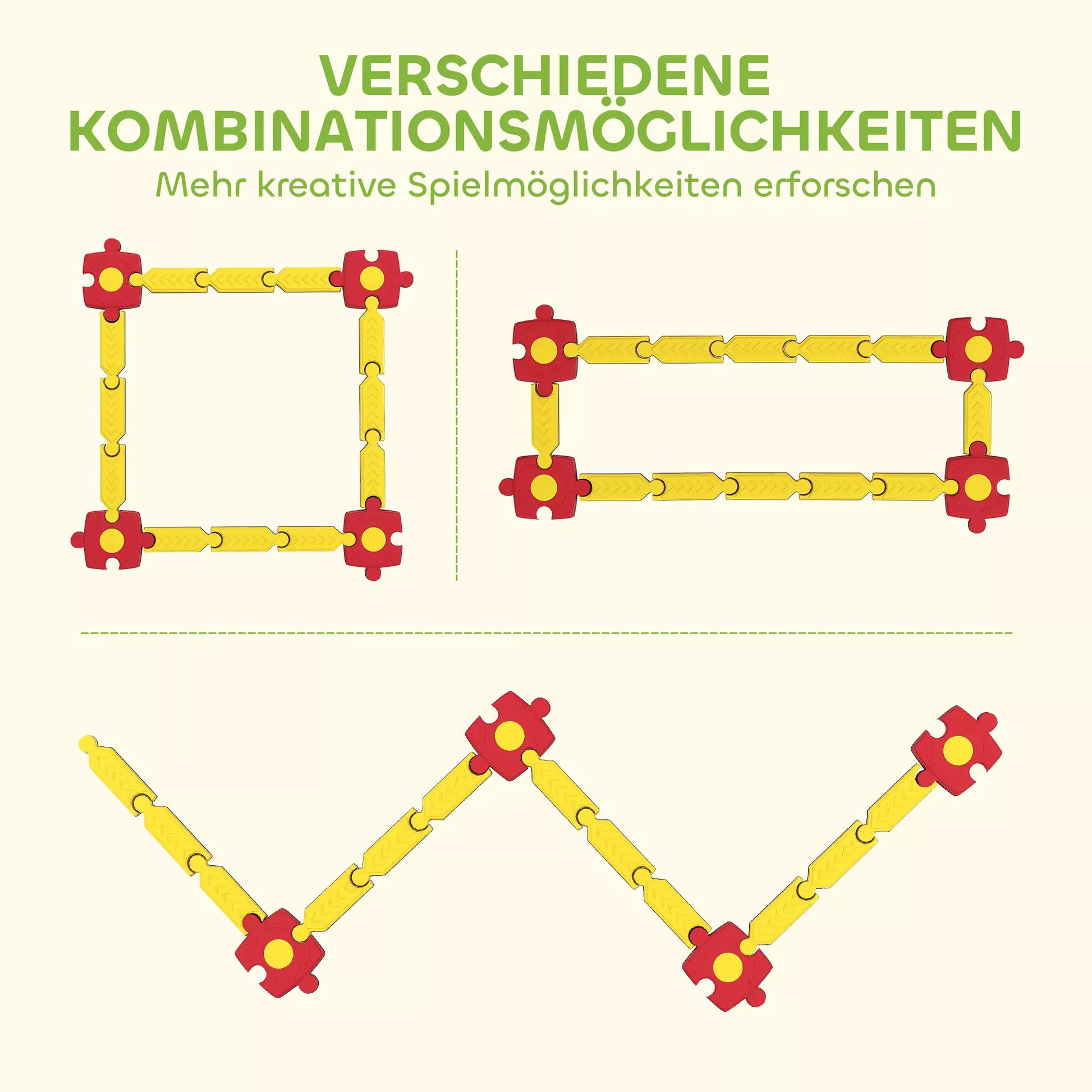 Vaikams skirta laisvai konstruojama plastikinių judriųjų sijų, lanksčių dalių, geltonos+raudonos spalvų rinkinys