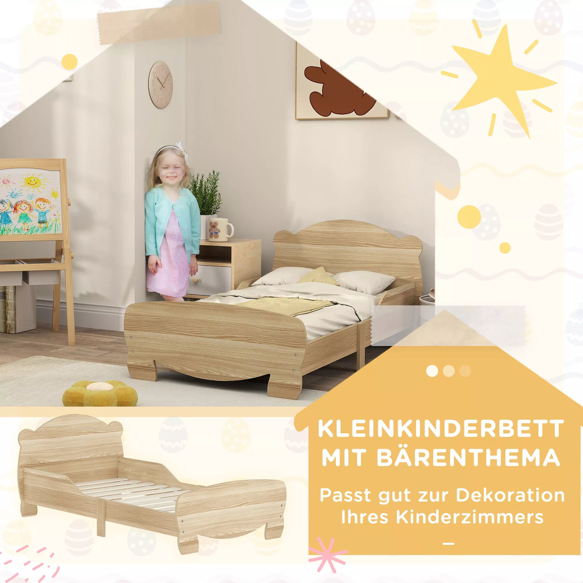 Vaikiška namelio formos lova su meškučio dizainu, žaidimų lova 3-6 metų vaikams, 143,5 x 80 x 55 cm, natūralaus medžio