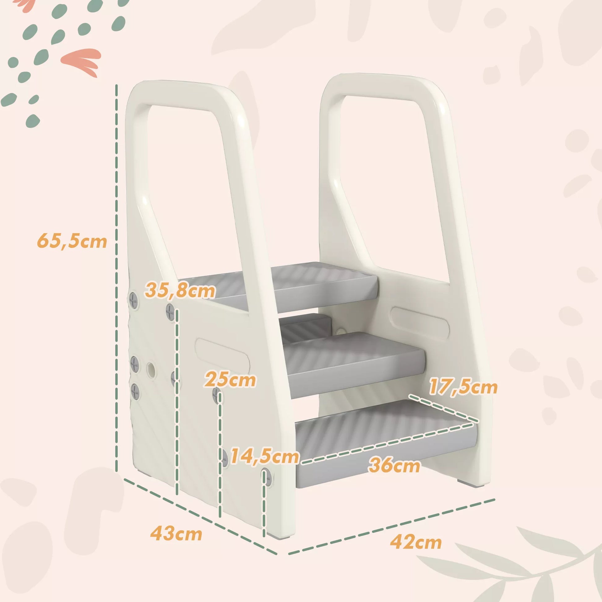 Vaikštiškas neslystantis pakojis su rankena, reguliuojamas iš 3 į 2 pakopas, tinkamas ivairioms patalpoms, pilkos spalvos, pagamintas iš plastiko.