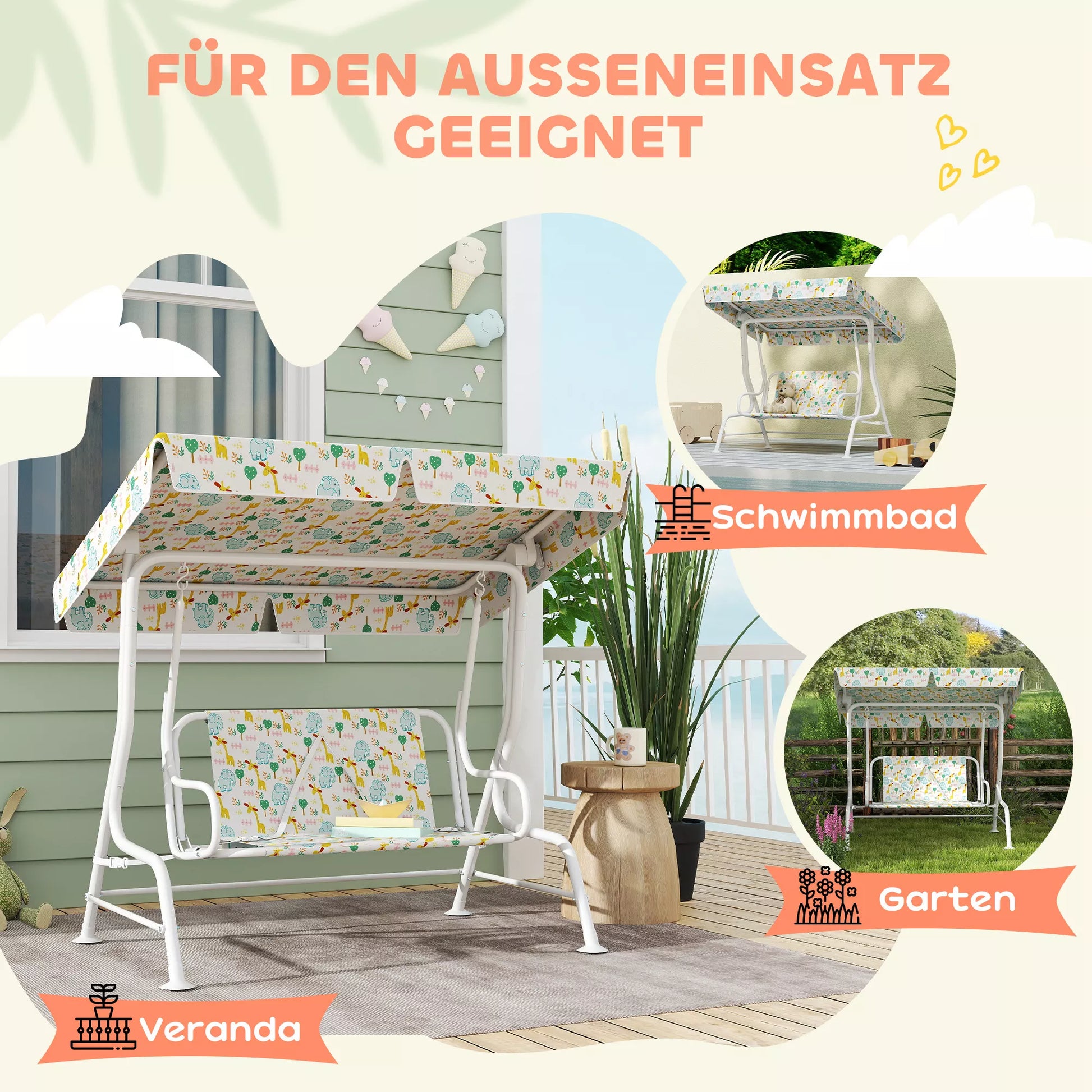 Patirkite malonumą atsipalaiduojant lauke su šiais 2 vietų sūpynėmis. Jos turi nuimamą, reguliuojamą stogelį nuo saulės, apsaugantį jūsų vaikus, puikiai tinka sodui ar prie baseino. Tvirtas plieninis rėmas su neslystančiomis kojelėmis užtikrina saugumą, o žaismingas vaivorykštės dizainas – linksmumą. Puikiai tinka vaikų bendriems sūpynių nuotykiams!
