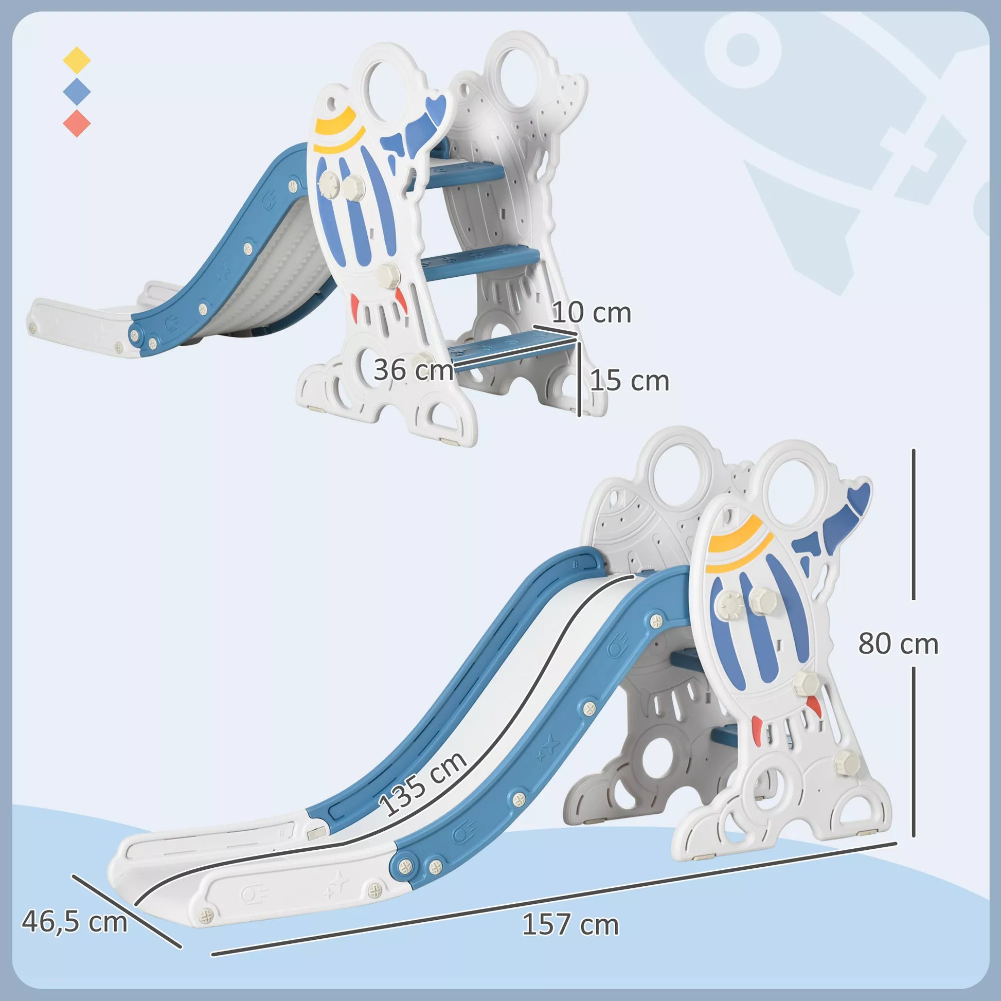 Čiuožykla vaikams nuo 1,5 iki 3 metų, raketos dizainas, lipdukų rinkinys, mėlyna, 157 x 46,5 x 80 cm