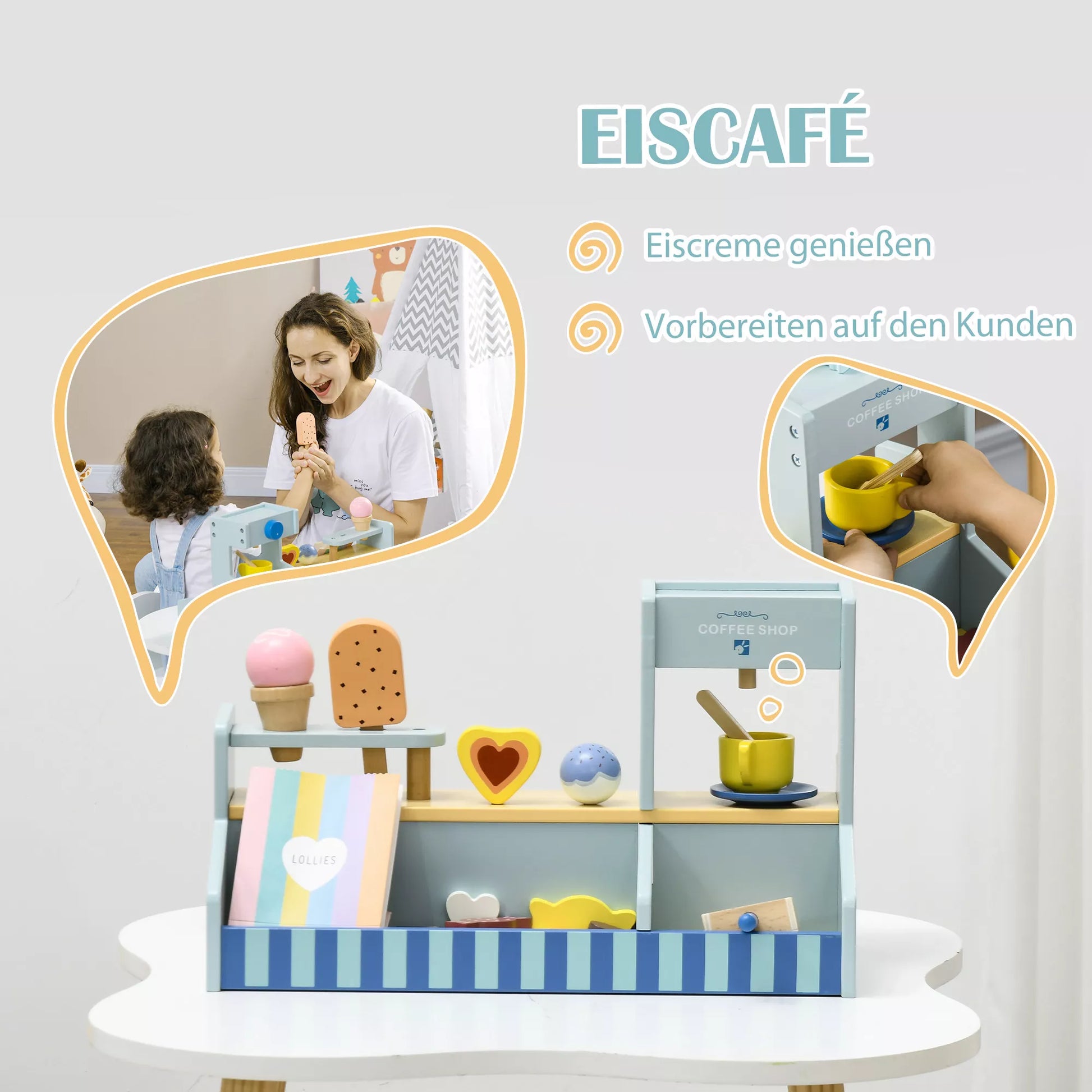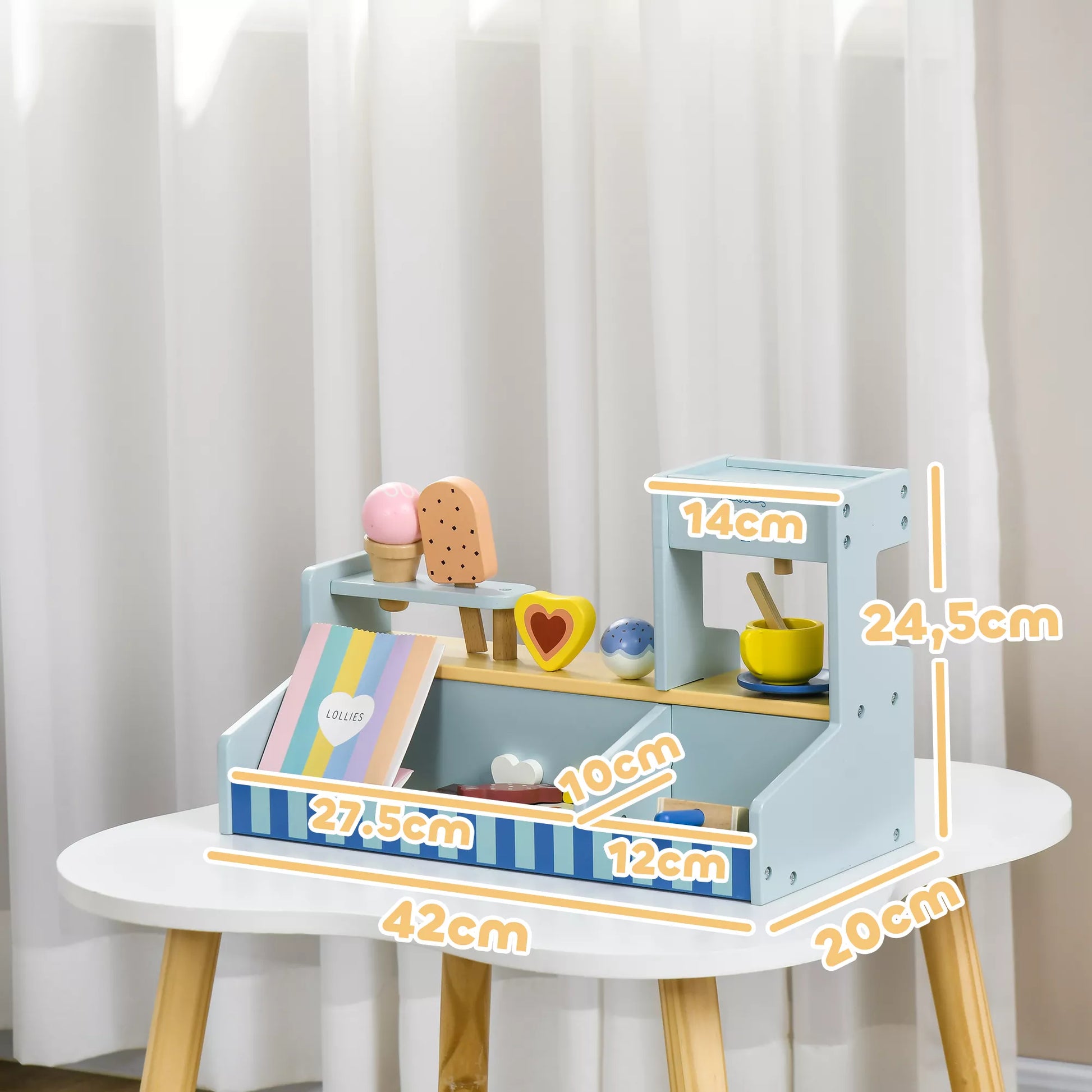 Žaidimų ledų namelis vaikams, ledų kioskeli, daug priedų, lavina vaizduotę ir motoriką, šviesiai mėlyna spalva