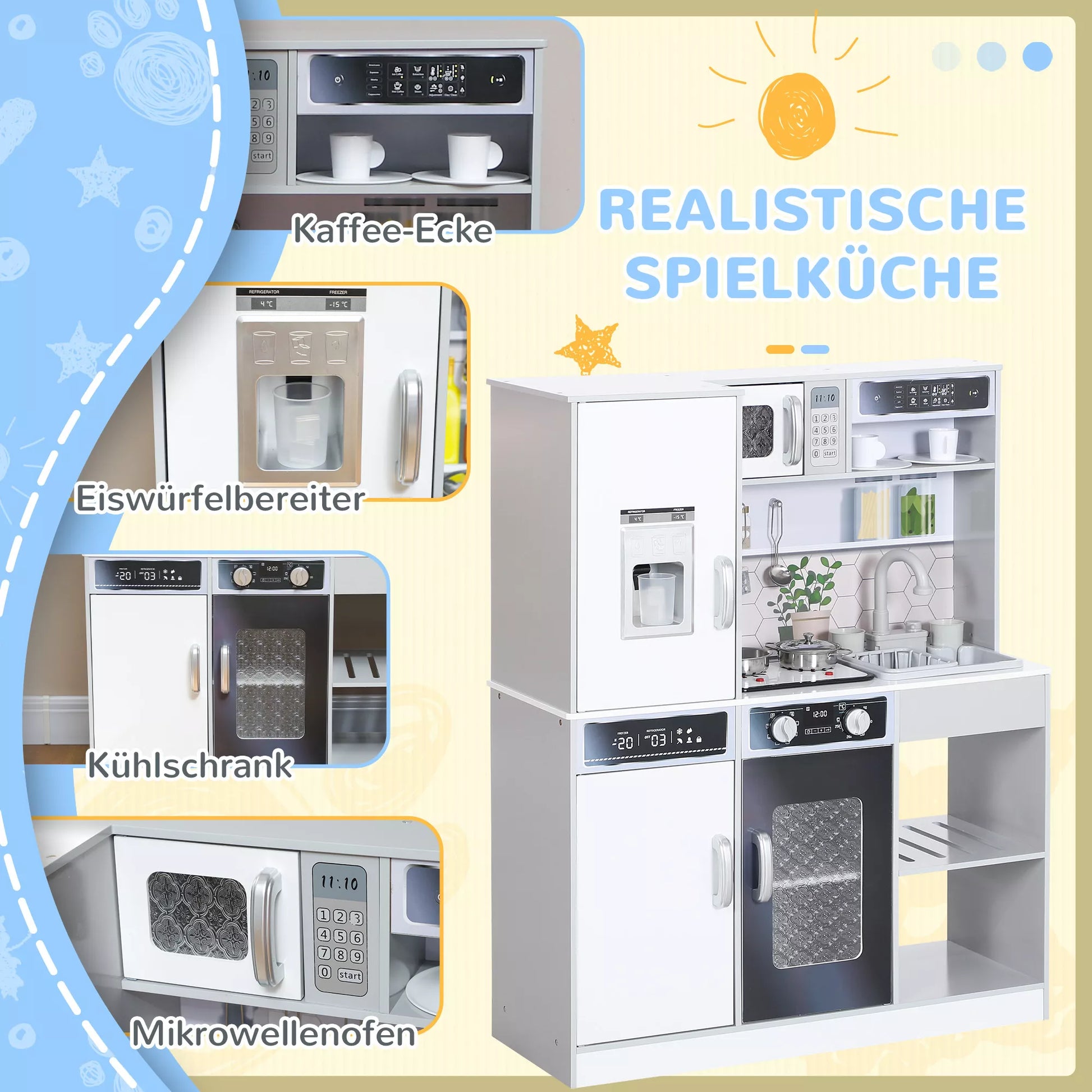 Atverkite vaiko kulinarinę kūrybą su žaidimų virtuvėlės komplektu! Ši įspūdinga žaislinė virtuvė turi viryklę su tikroviškais garsais ir šviesomis, šaldytuvą, ledo gaminimo aparatą ir mikrobangų krosnelę – tai begaliniam žaidimų džiaugsmui. Integruotas kavos aparatas vaikų virtuvėlėje užtikrins stebuklingas pusryčių akimirkas. Virimas tampa dar autentiškesnis dėl kriauklės su vandens cirkuliacijos sistema – tai nepakeičiama dovana mažiesiems virėjams!