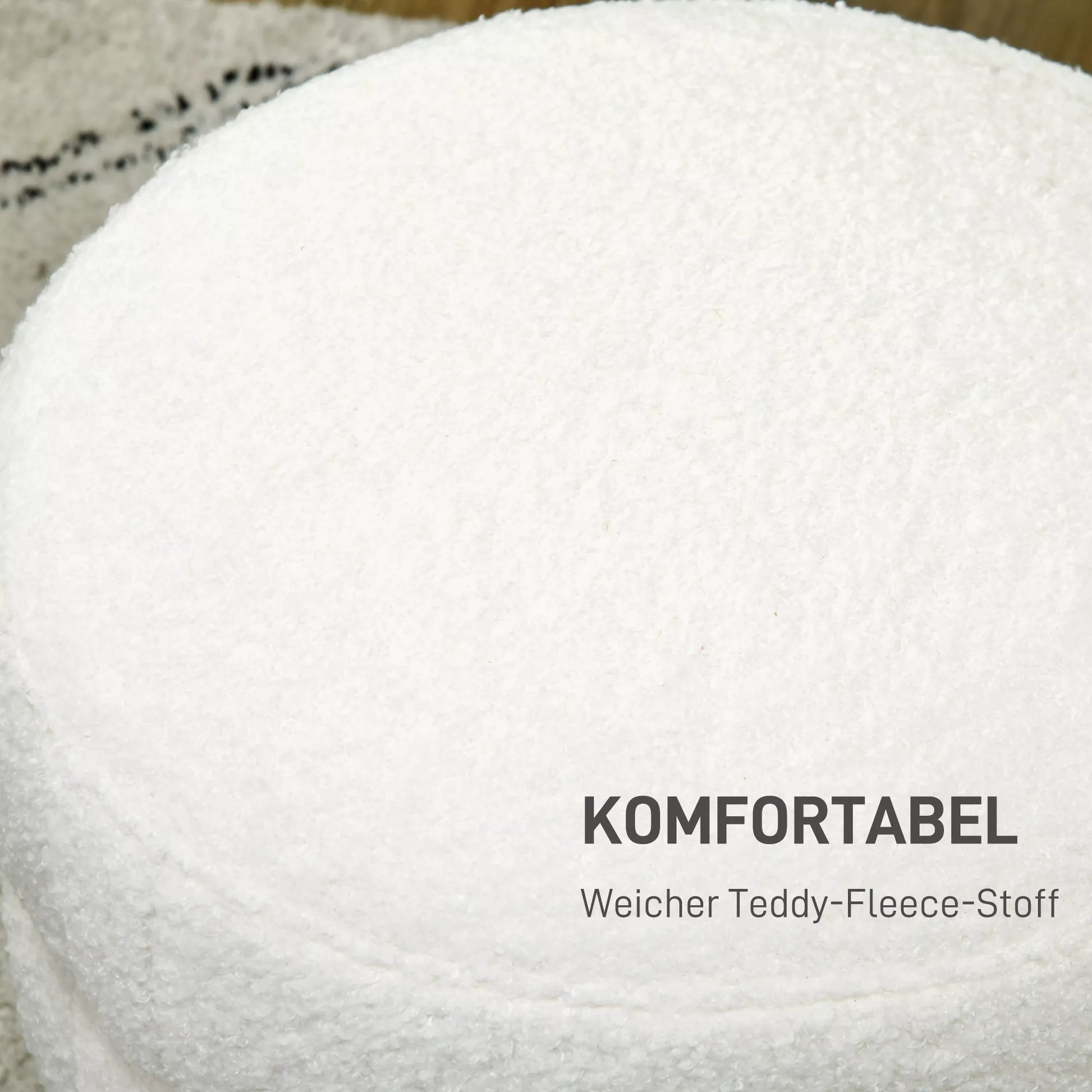 Apvali taburetė, Teddy vilnos audinio, iki 120 kg, Ø 40x45 cm, kreminės baltumo