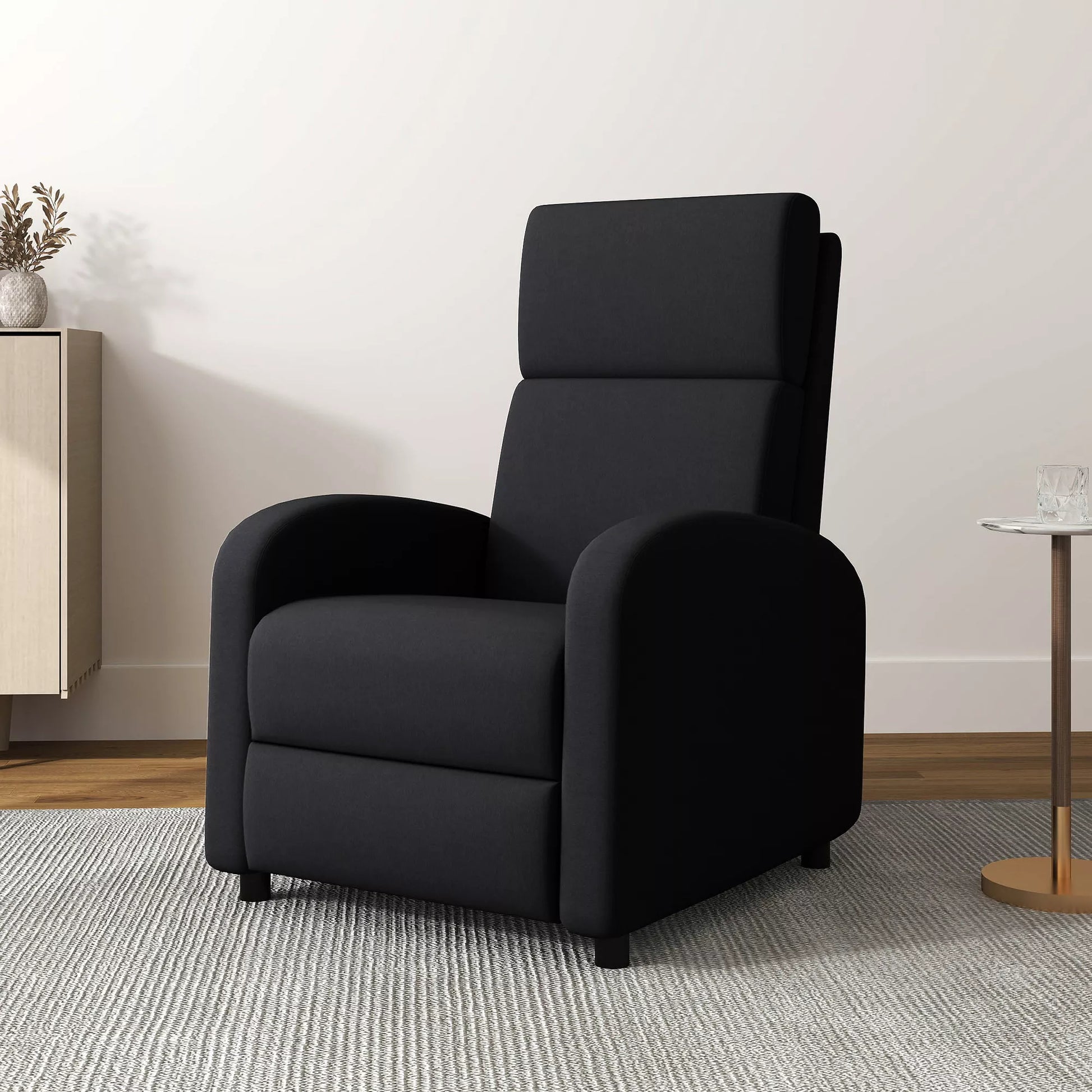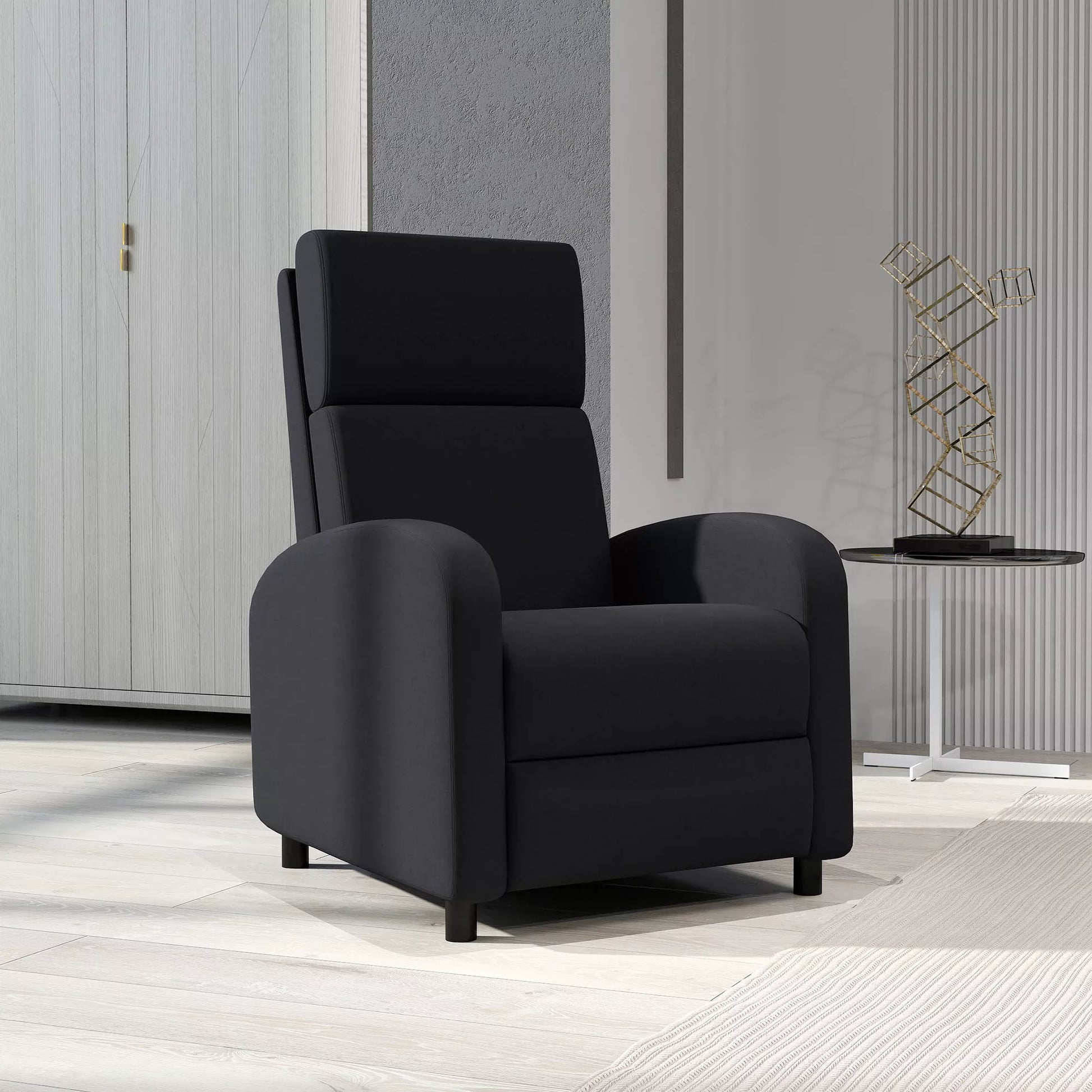 Atsipalaidavimo fotelis, minkštas, su gulėjimo funkcija, reguliuojama atlošo padėtimi ir kojų atrama, juodas