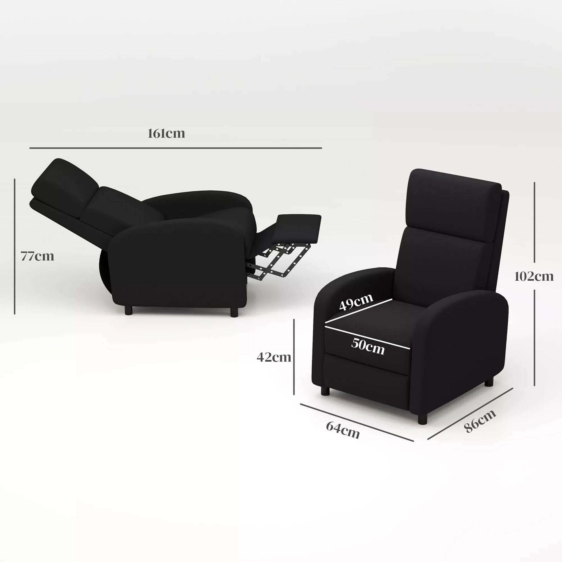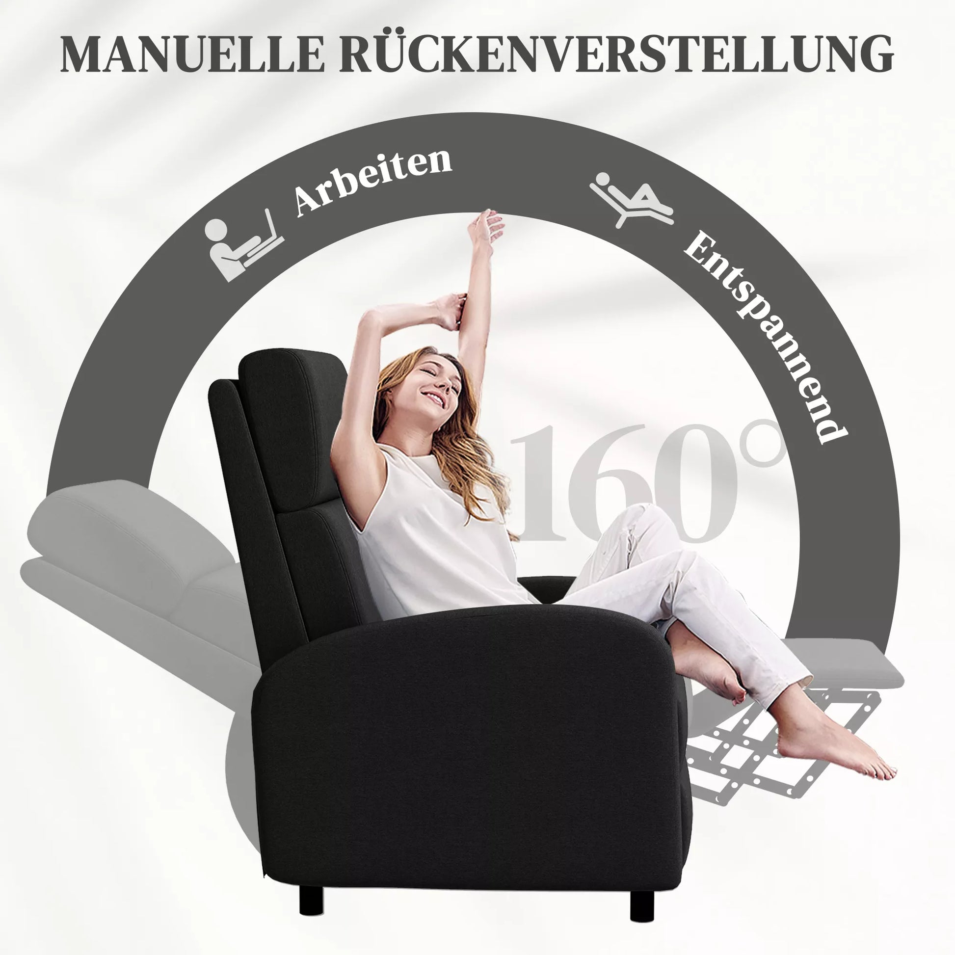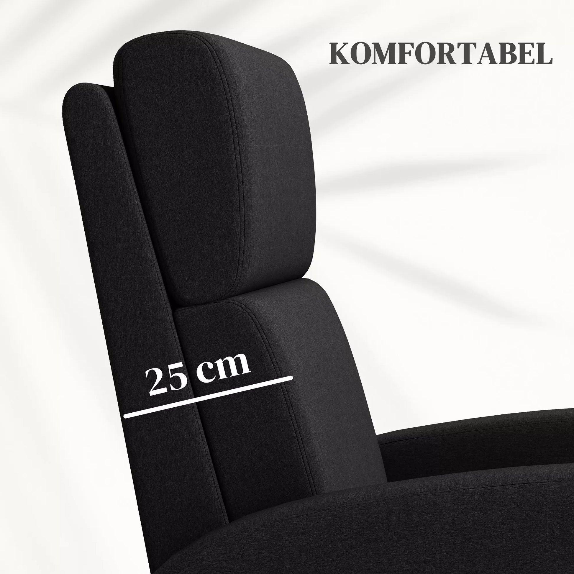 Praleiskite savo laisvalaikį atsipalaidavę šiame fotelyje. Šis modernus televizoriaus fotelis su 160 laipsnių atlošimo kampu, storu paminkštinimu ir lininio audinio paviršiumi suteikia patogią vietą poilsiui. Fotelio rėmas yra tvirtas ir stabilus. Tiesiog atsiloškite ir padėkite kojas ant kojų atramos, kad galėtumėte mėgautis užtarnauta pertrauka.