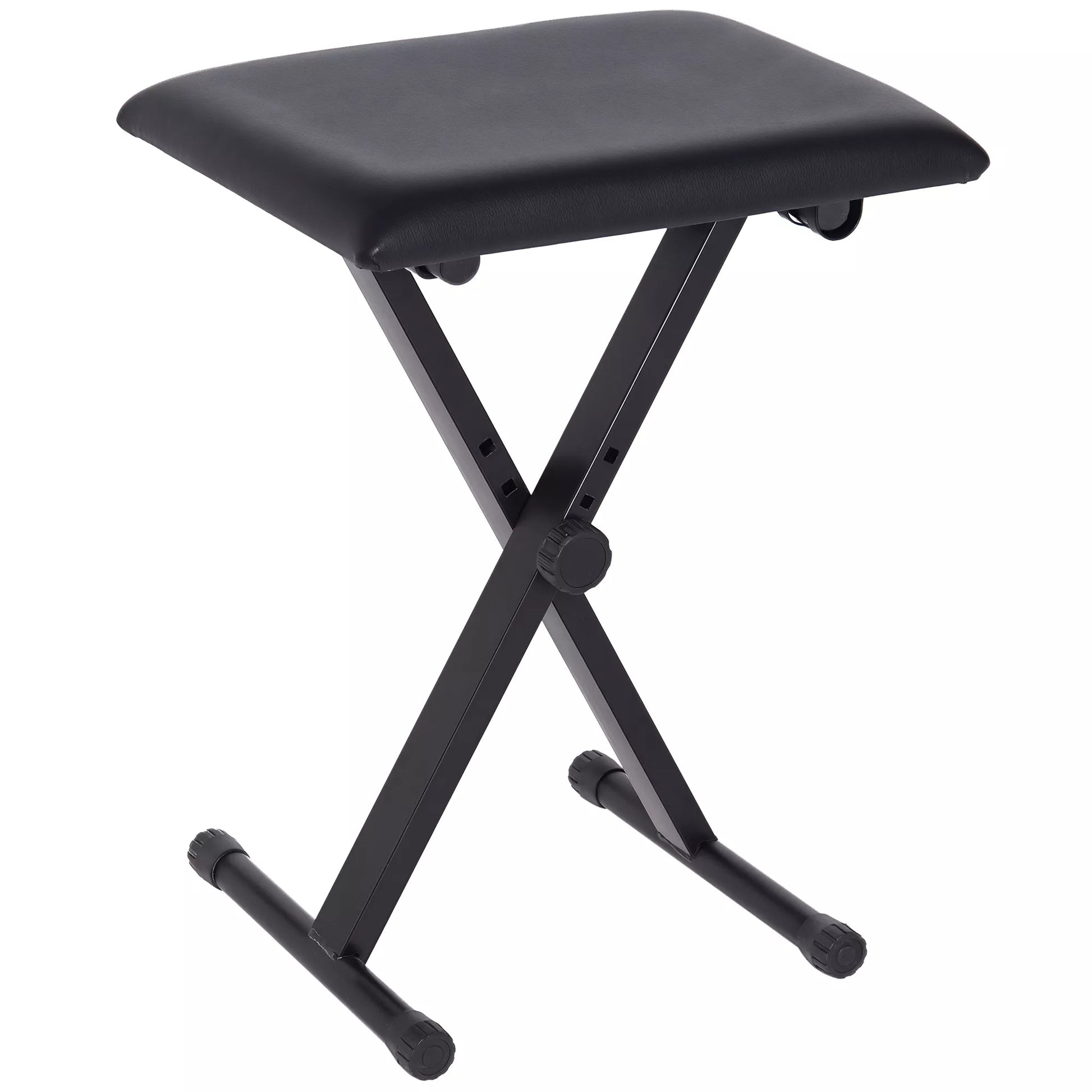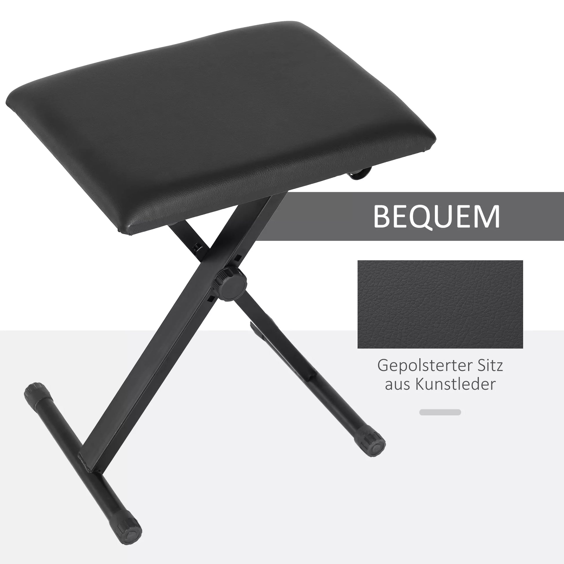 Aukščio reguliavimo pianino suolas, X formos fortepijono suolas su dirbtinės odos pagalvėle, sulankstomas klavišinių instrumentų suolas, 39 x 29 x 37-47 cm, juodas