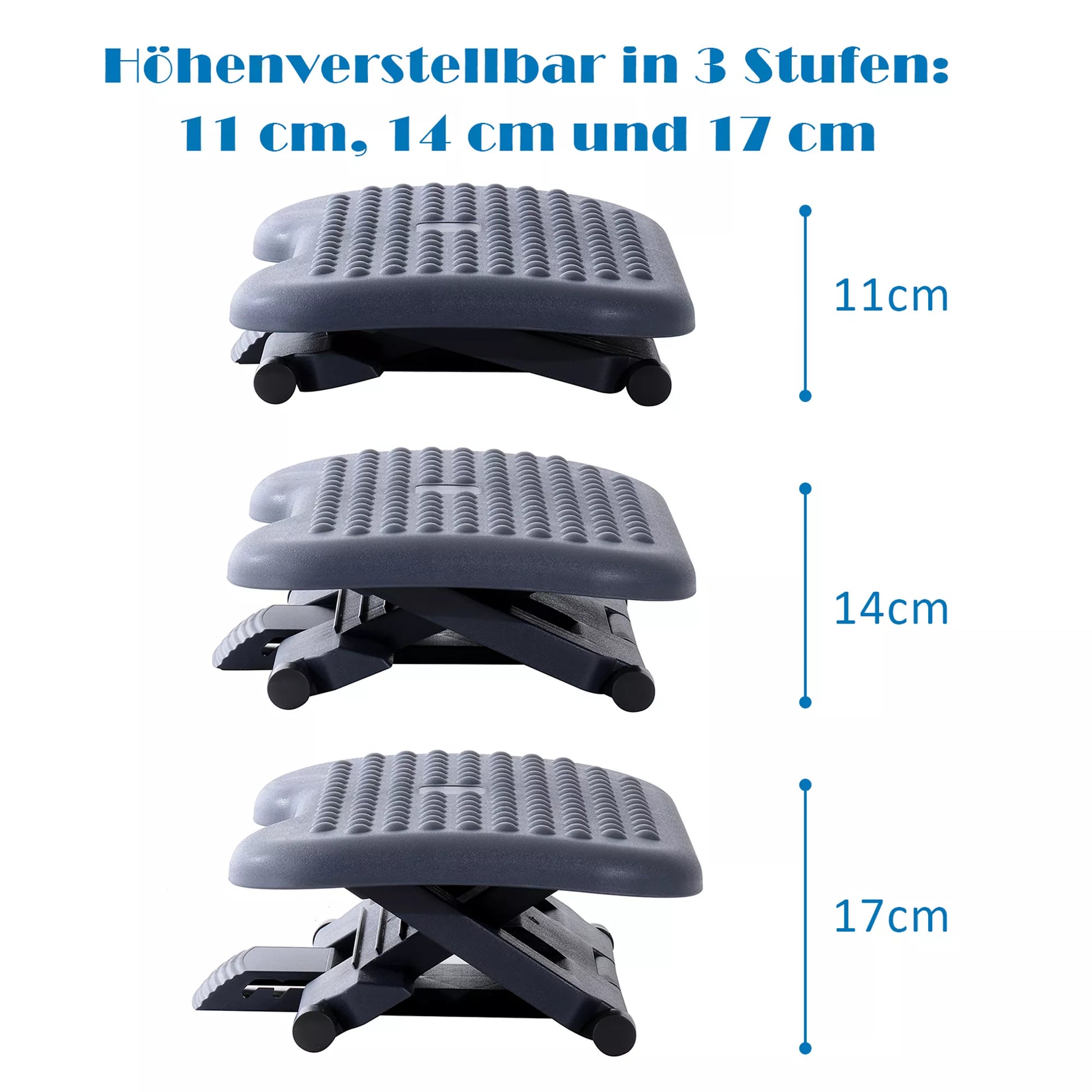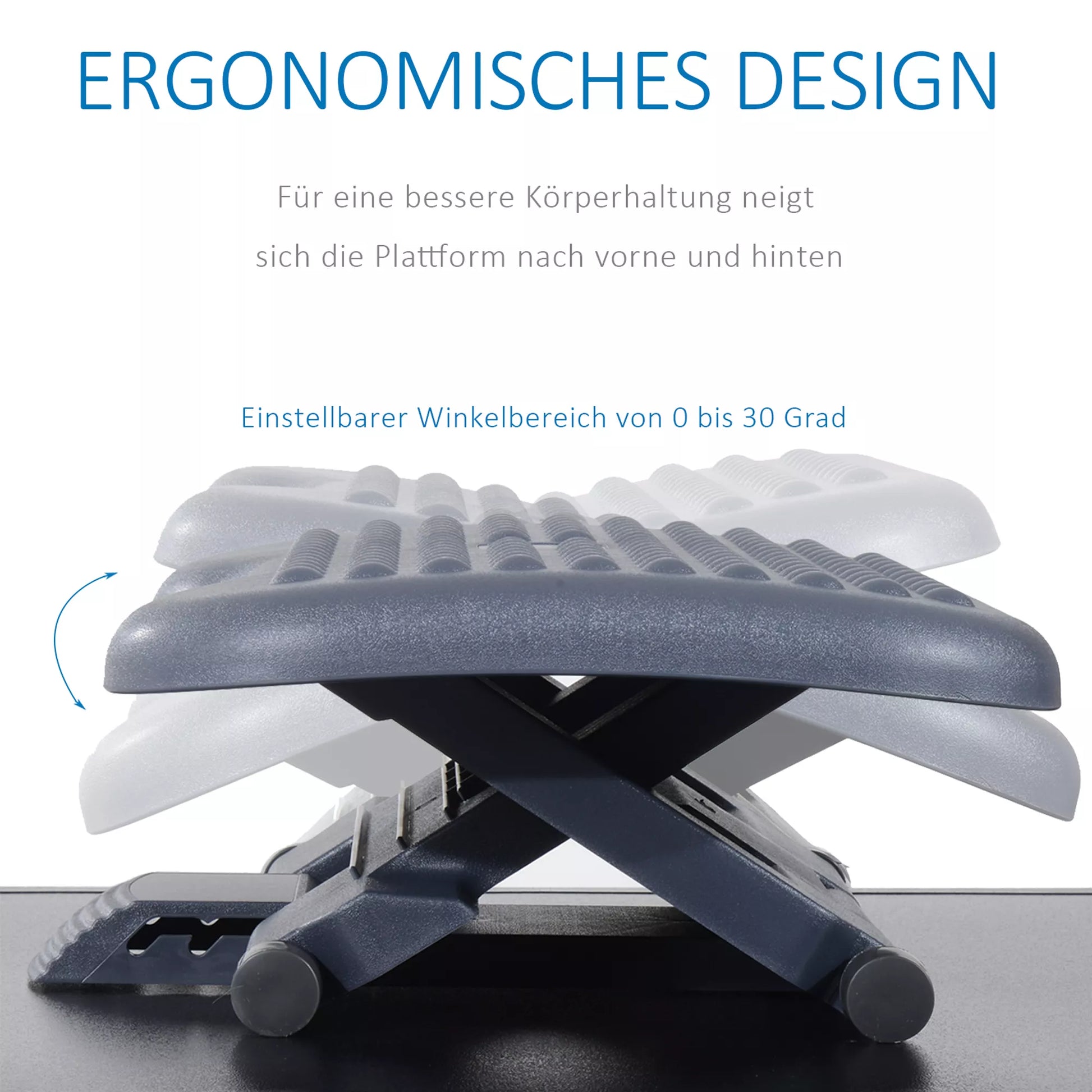 Sąnarių ir raumenų įtampą dėl ilgų darbo dienų prie rašomojo stalo galima sumažinti naudojant šią mažą ir funkcionalią kojų atramą. Kojų atrama padės skatinti kraujotaką kojose ir pėdose bei mažinti nuovargį. Šią mažą atramą galite lengvai padėti po stalu ir naudoti. Dėl reguliuojamo aukščio ir pasvirimo kampo, ši kojų atrama idealiai tinka kiekvienam ir yra tinkama tiek namams, tiek biurui.