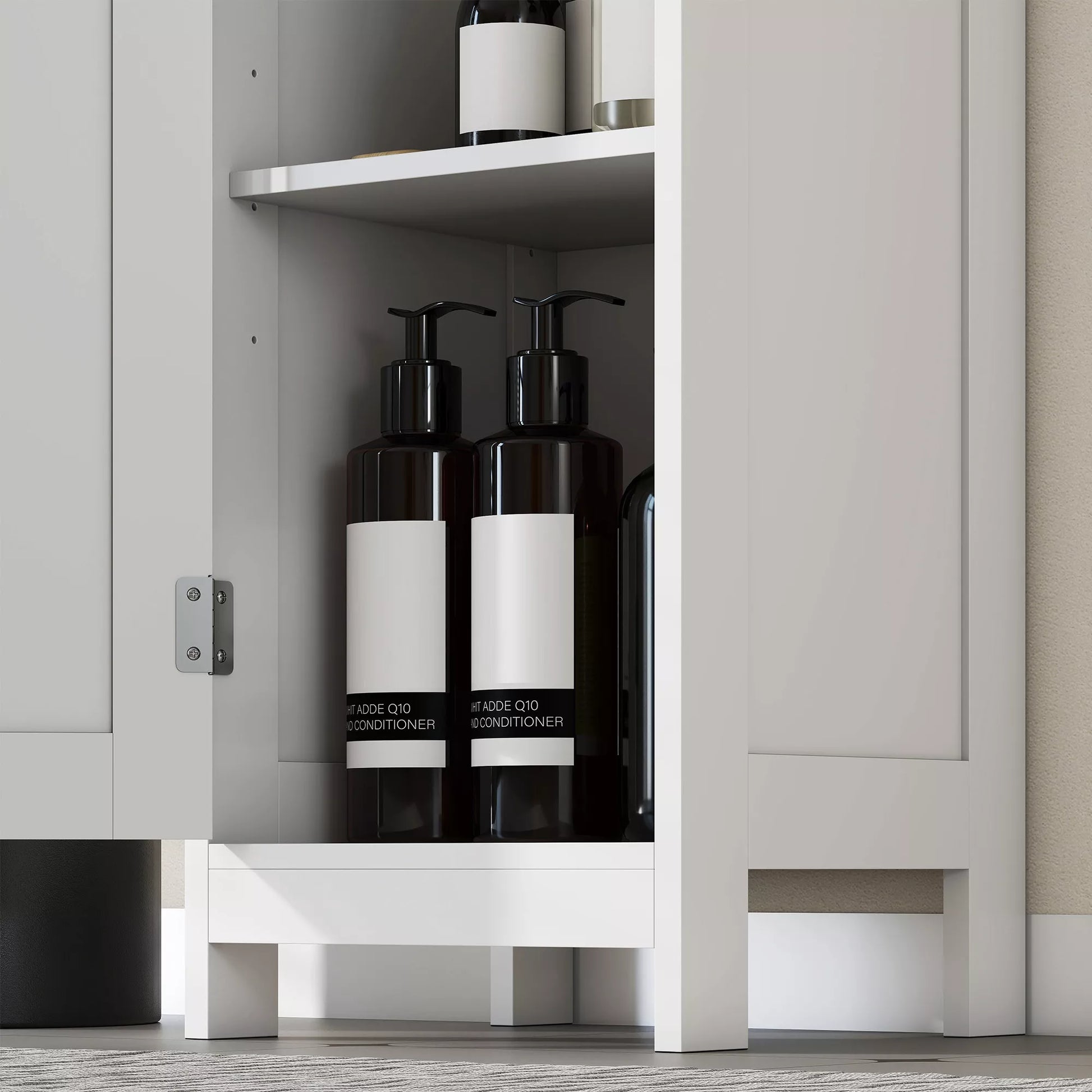 - ✔ Dvi uždaros spintelės ir du atviri skyriai padeda palaikyti tvarką vonios kambaryje