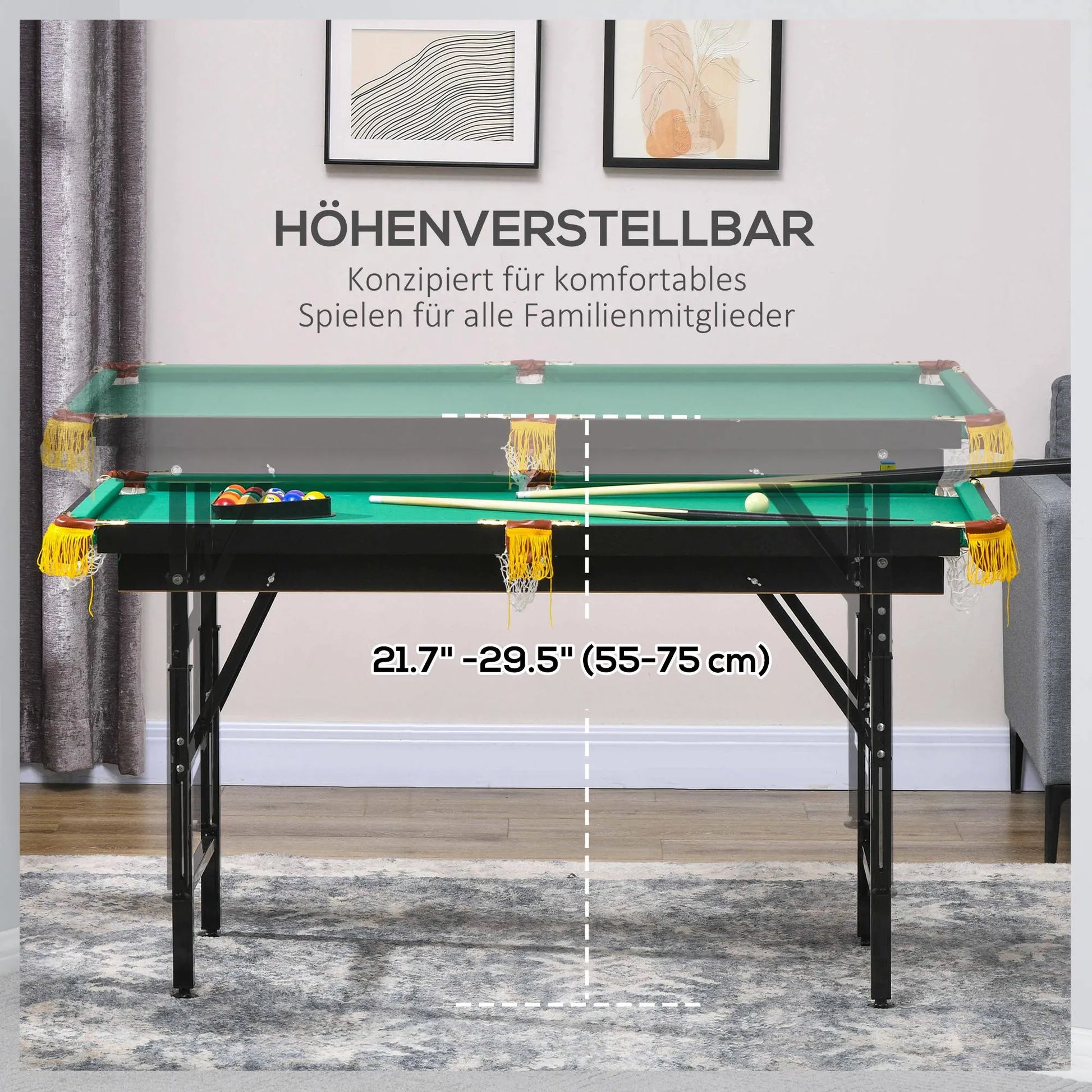 Biliardo stalas, sulankstomas, aukštyje reguliuojamas, komplekte trikampis/2 meškerės/16 kamuolių, žalias