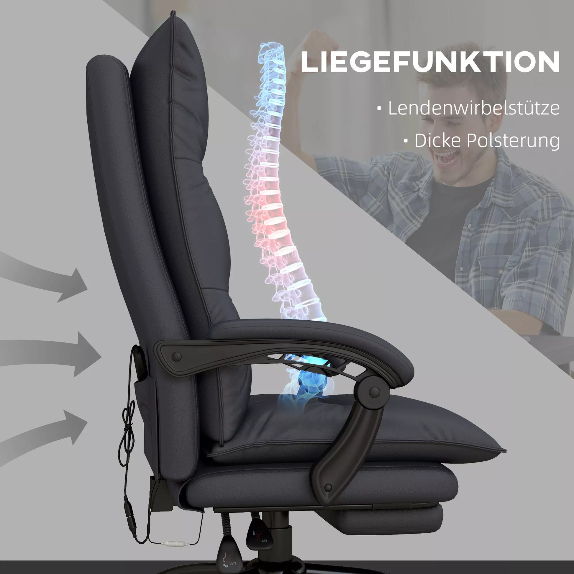 Biuro kėdė su masažo ir šildymo funkcija, kojų atrama, iki 120 kg, tamsiai pilka