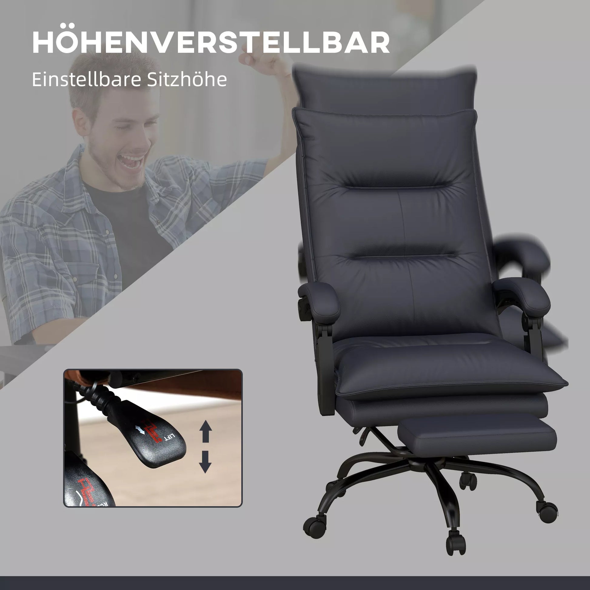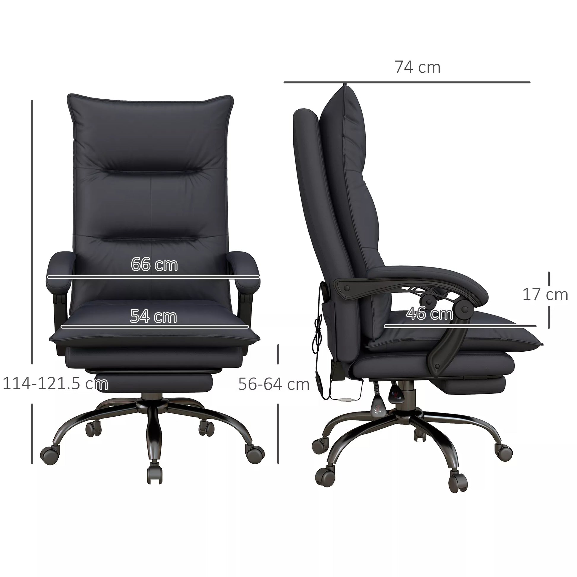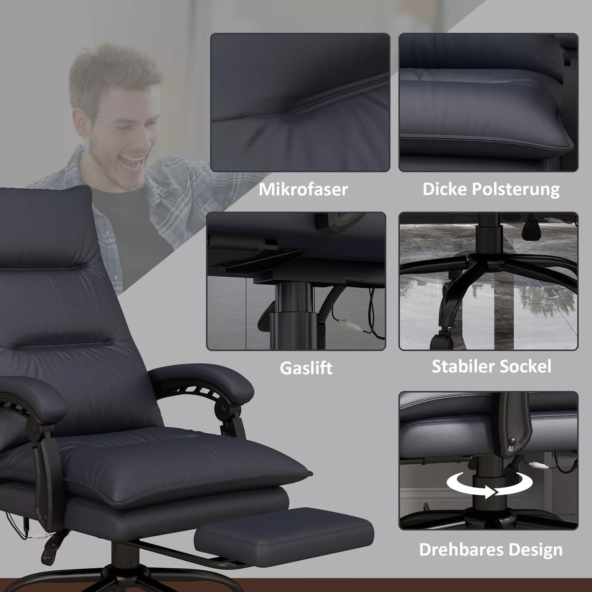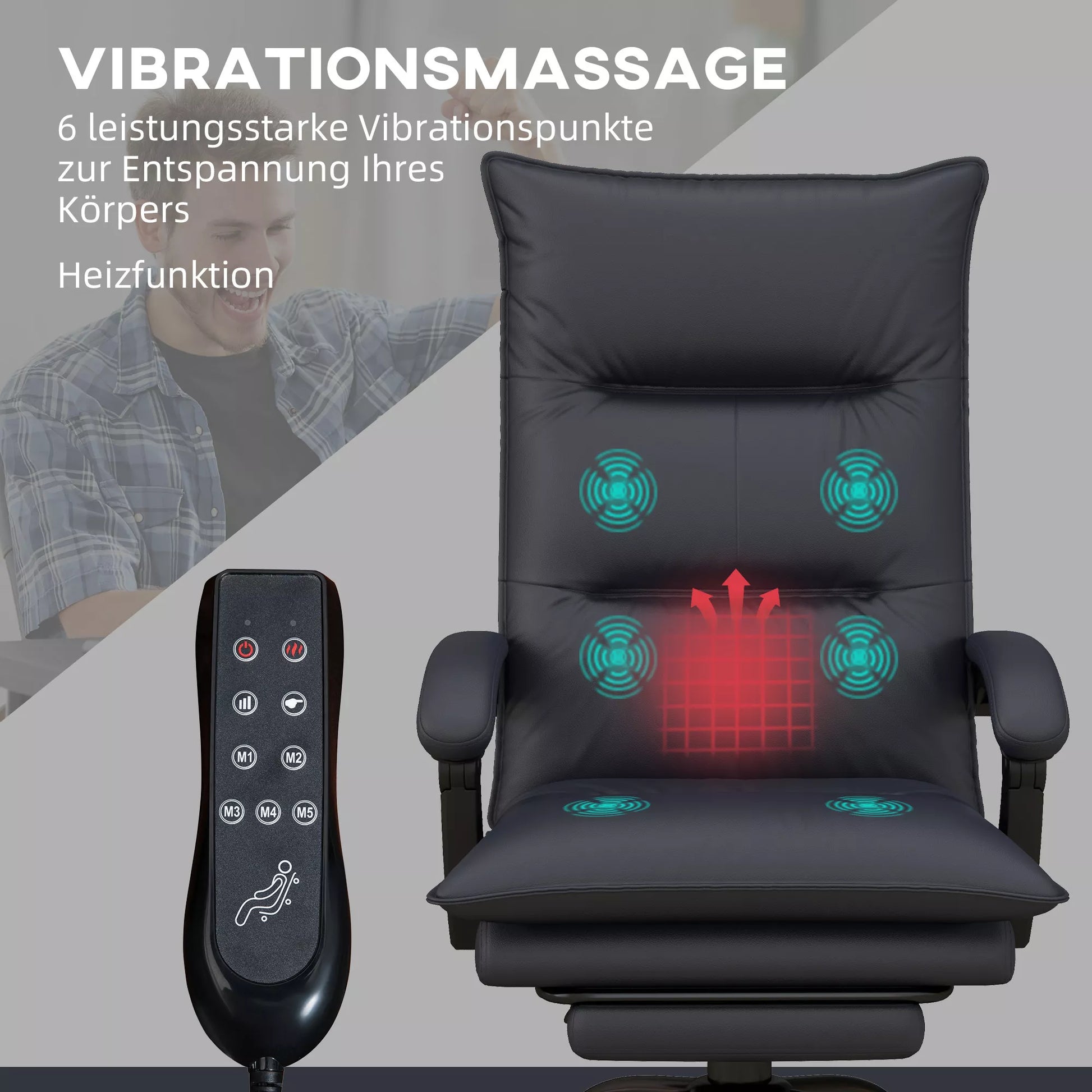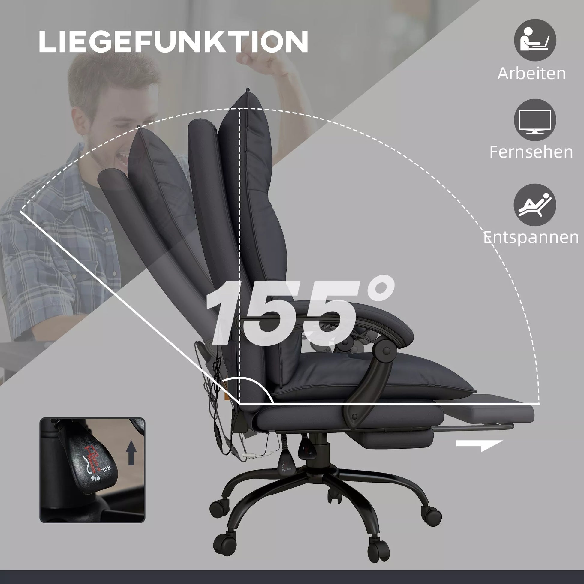 Atsipalaiduokite ir padidinkite savo produktyvumą su šia biuro kėdute! Ši ergonomiška kompiuterio kėdė turi šešis vibracinio masažo taškus su penkiais skirtingais masažo režimais jūsų kūnui atpalaiduoti. Integruota šildymo funkcija suteikia papildomos naudos. 155° atlošo kampas ir išskleidžiama kojų atrama leidžia pasidėti kojas aukštai, o švelniai lenkta atlošo atrama ir gausiai paminkštinta sėdynė švelniai palengvina jūsų nugarą.