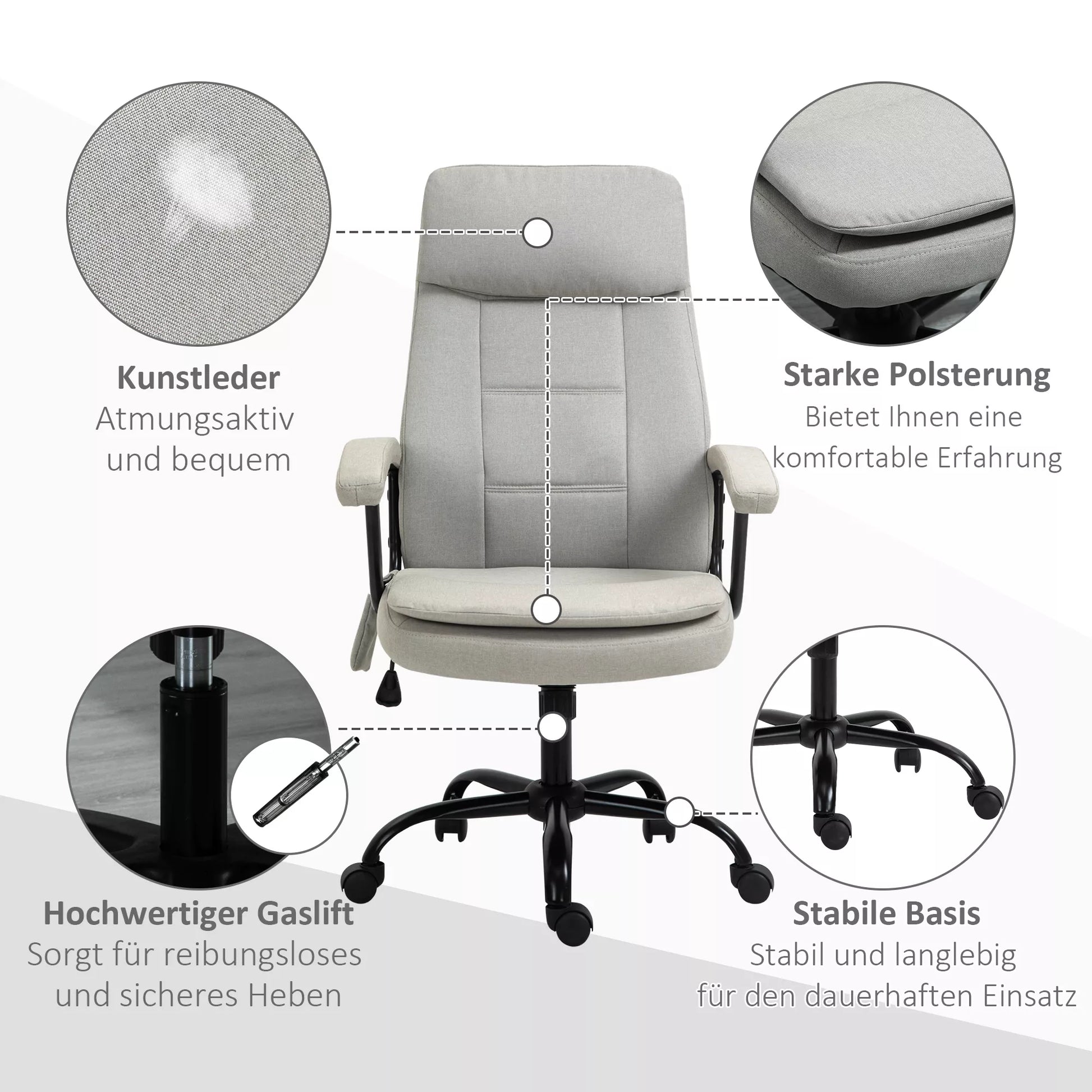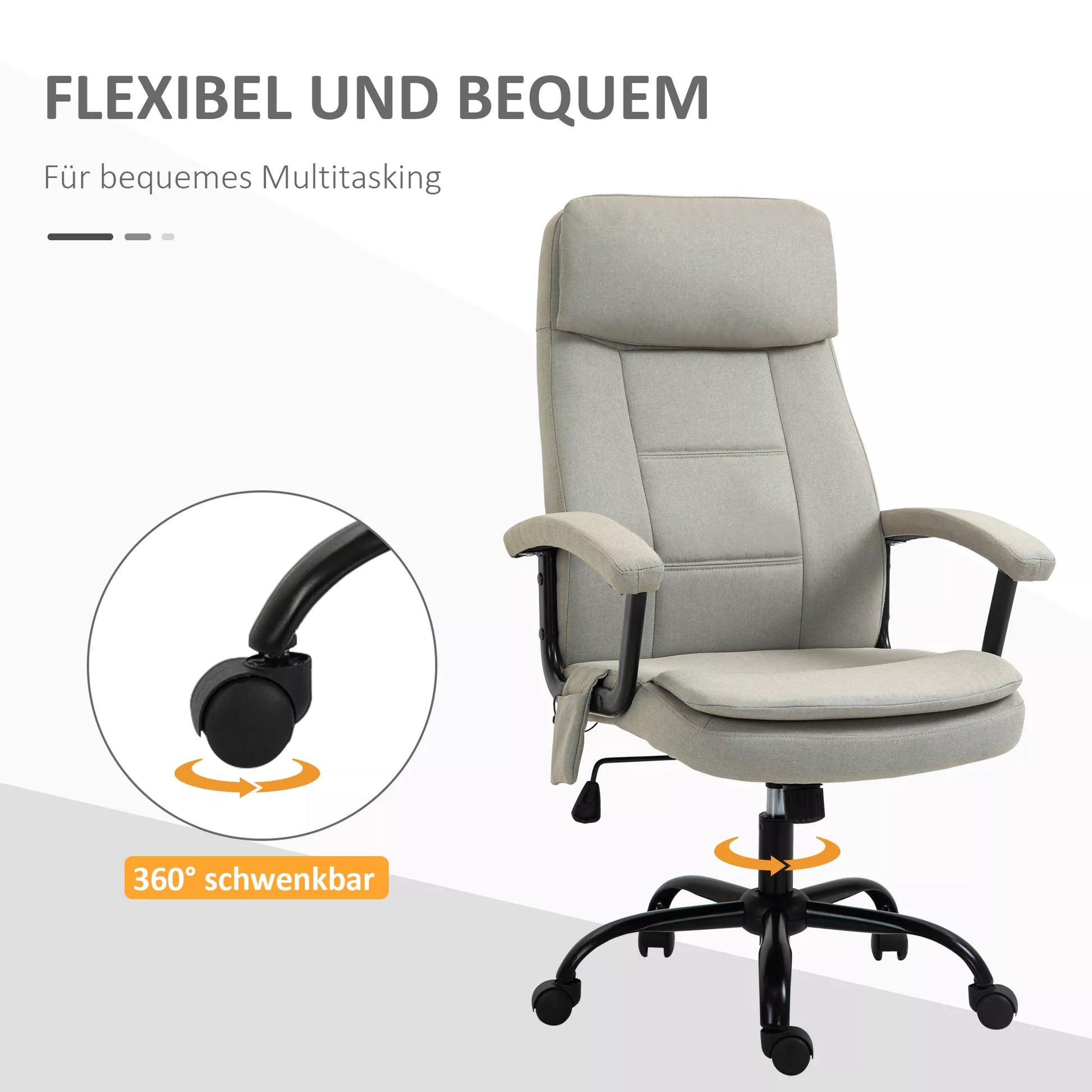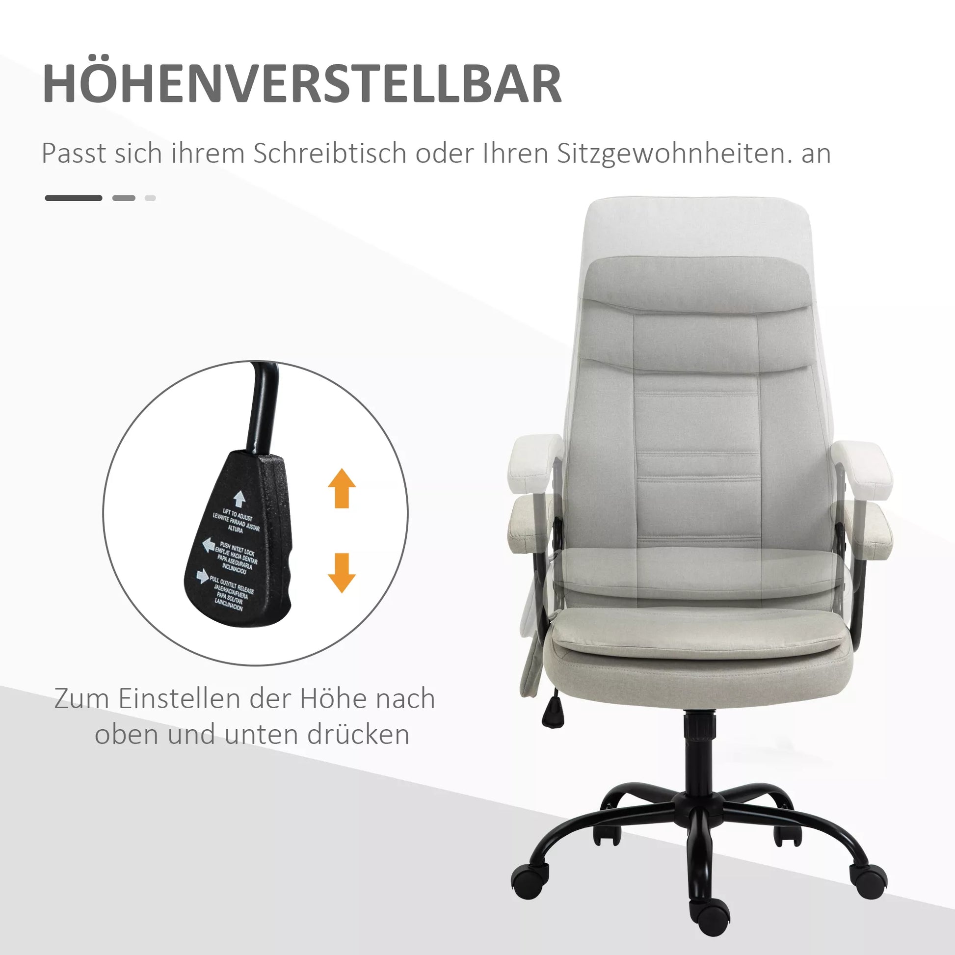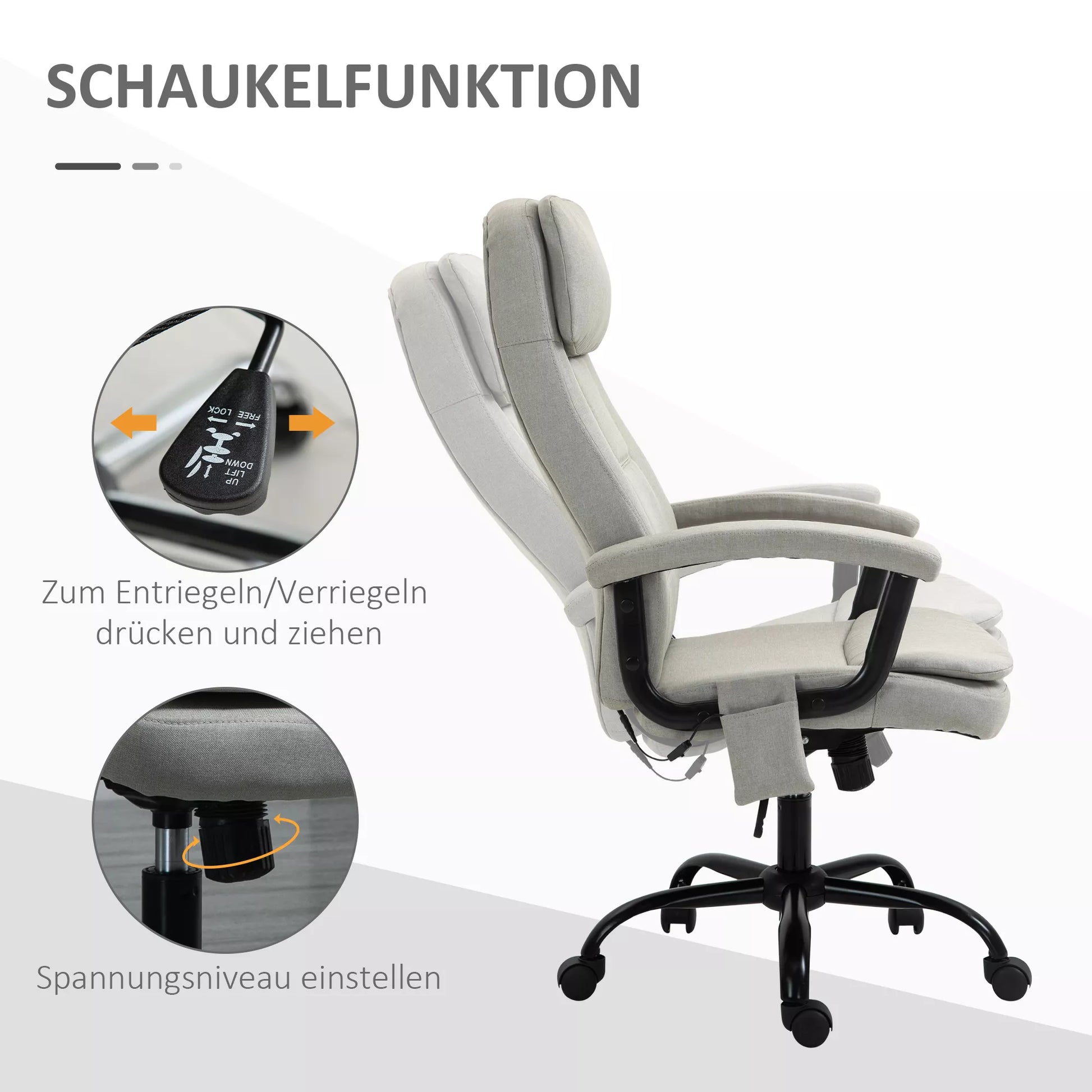 Biuro kėdė su masažu Vinsetto, aukščio reguliavimo, vadovo kėdė, žaidimų kėdė su masažo funkcija, ergonomiškas sukamas krėslas su juosmens masažo funkcija, lininis įspūdis, smėlio spalvos, 63 x 70 x 112-121 cm