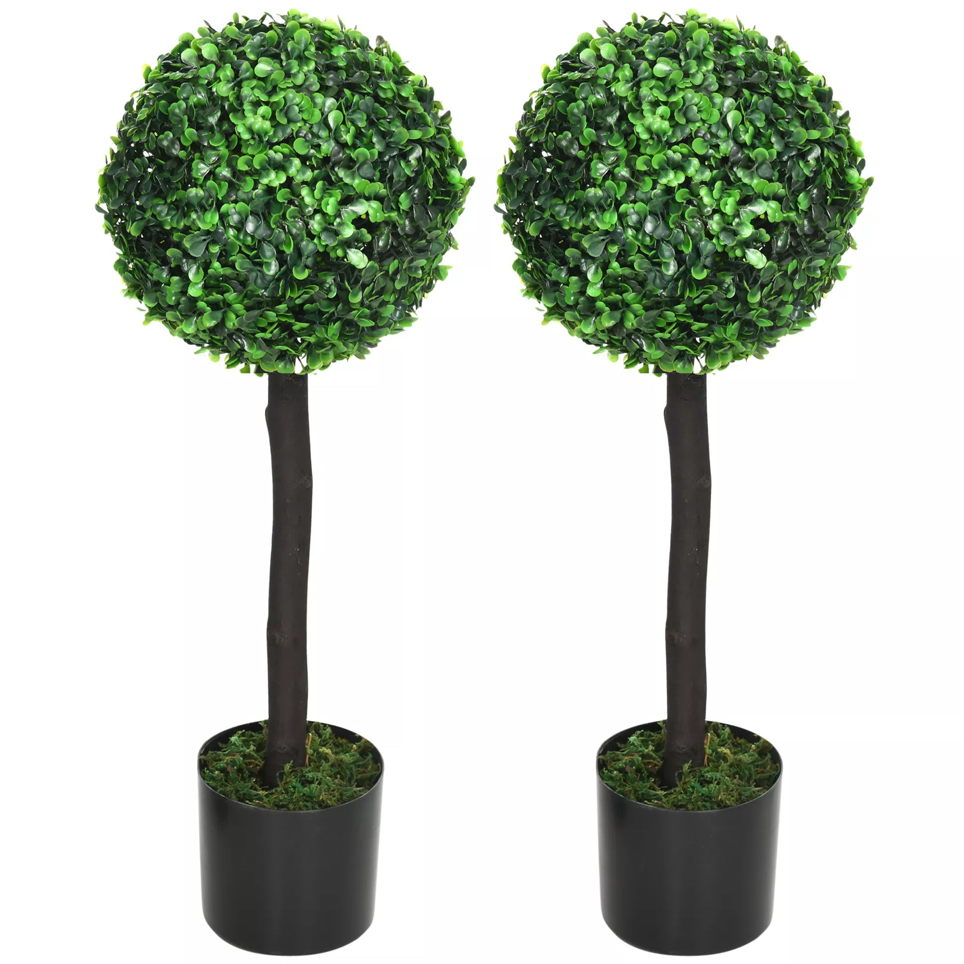2 vnt. rinkinys Dirbtinio buksmedžio, 2 buksmedžiai, Lauko, 20 cm x 20 cm x 60 cm, Žalia + ruda + juoda