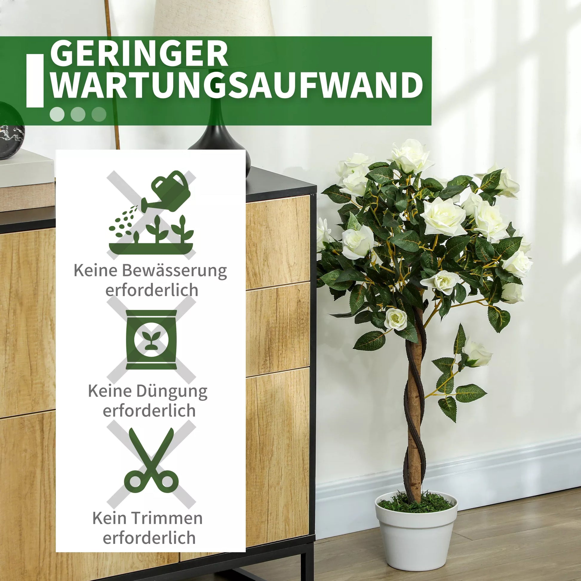 - ✔ Visiškai dirbtinis, šiam augalui nereikia daug priežiūros